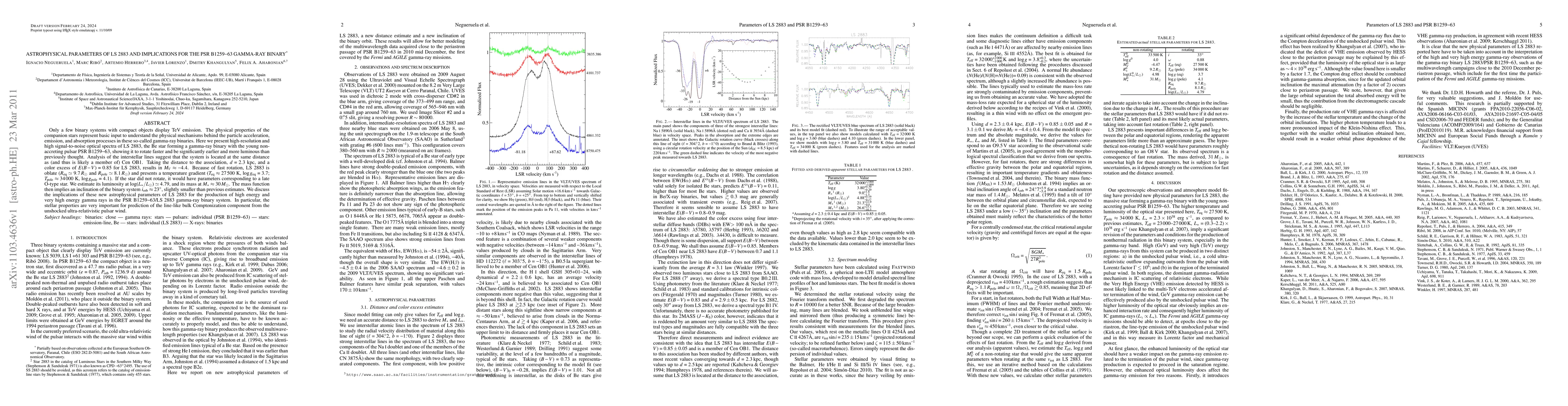 Only a few binary systems with compact objects display TeV emission. The physical properties of the companion stars represent basic input to understand the physical mechanisms behind the particle acceleration, emission, and absorption processes in these so-called gamma-ray binaries. Here we present high-resolution and high signal-to-noise optical spectra of LS2883, the Be star forming a gamma-ray binary with the young non-accreting pulsar PSR B1259-63, showing it to rotate faster and be significantly earlier and more luminous than previously thought. Analysis of the interstellar lines suggest that the system is located at the same distance as (and thus is likely a member of) CenOB1. Taking the distance to the association, d=2.3kpc, and a color excess of E(B-V)=0.85 for LS2883, results in Mv=-4.4. Because of fast rotation, LS2883 is oblate (R_eq=9.7R_sun and R_pole=8.1R_sun) and presents a temperature gradient (T_eq=27500K, log g_eq=3.7; T_pole=34000K, log g_pole=4.1). If the star did not rotate, it would have parameters corresponding to a late O-type star. We estimate its luminosity at log(L*/L_sun)=4.79, and its mass at M=30M_sun. The mass function then implies an inclination of the binary system i_orb=23deg,slightly smaller than previous estimates. We discuss the implications of these new astrophysical parameters of LS2883 for the production of high energy and very high energy gamma rays in the PSR B1259-63/LS2883 gamma-ray binary system. In particular, the stellar properties are very important for prediction of the line-like bulk Comptonization component from the unshocked ultra-relativistic pulsar wind.