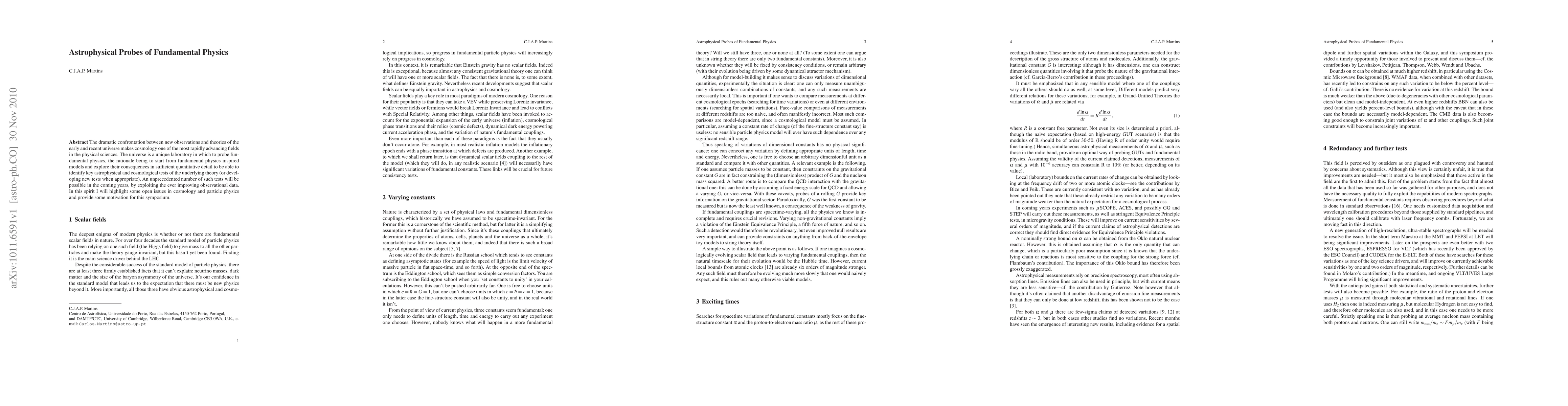 This paper discusses how advancements in cosmology and particle physics are driven by new observations and theories of the universe, emphasizing the potential for astrophysical probes to test fundamental physics models. It highlights open issues and anticipates numerous tests enabled by improved observational data in the near future.