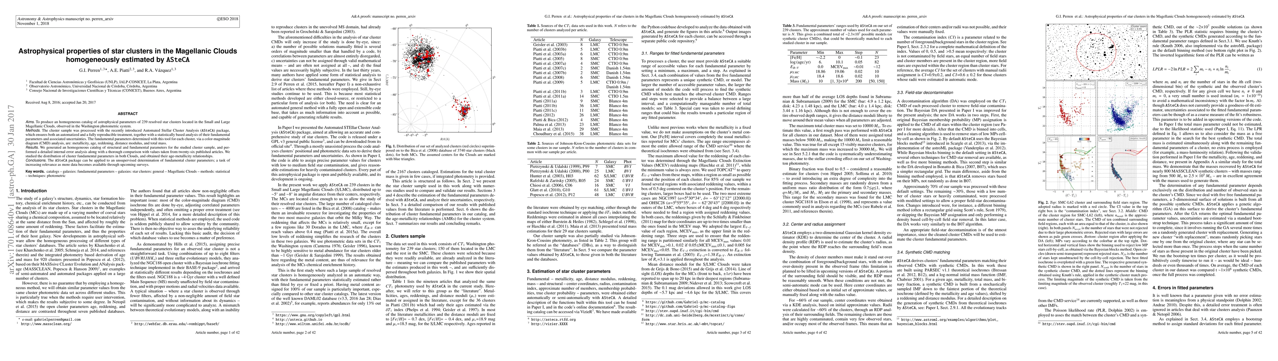 Aims. To produce an homogeneous catalog of astrophysical parameters of 239 resolved star clusters located in the Small and Large Magellanic Clouds, observed in the Washington photometric system. Methods. The cluster sample was processed with the recently introduced Automated Stellar Cluster Analysis ($\texttt{ASteCA}$) package, which ensures both an automatized and a fully reproducible treatment, together with a statistically based analysis of their fundamental parameters and associated uncertainties. The fundamental parameters determined with this tool for each cluster, via a color-magnitude diagram (CMD) analysis, are: metallicity, age, reddening, distance modulus, and total mass. Results. We generated an homogeneous catalog of structural and fundamental parameters for the studied cluster sample, and performed a detailed internal error analysis along with a thorough comparison with values taken from twenty-six published articles. We studied the distribution of cluster fundamental parameters in both Clouds, and obtained their age-metallicity relationships. Conclusions. The $\texttt{ASteCA}$ package can be applied to an unsupervised determination of fundamental cluster parameters; a task of increasing relevance as more data becomes available through upcoming surveys.