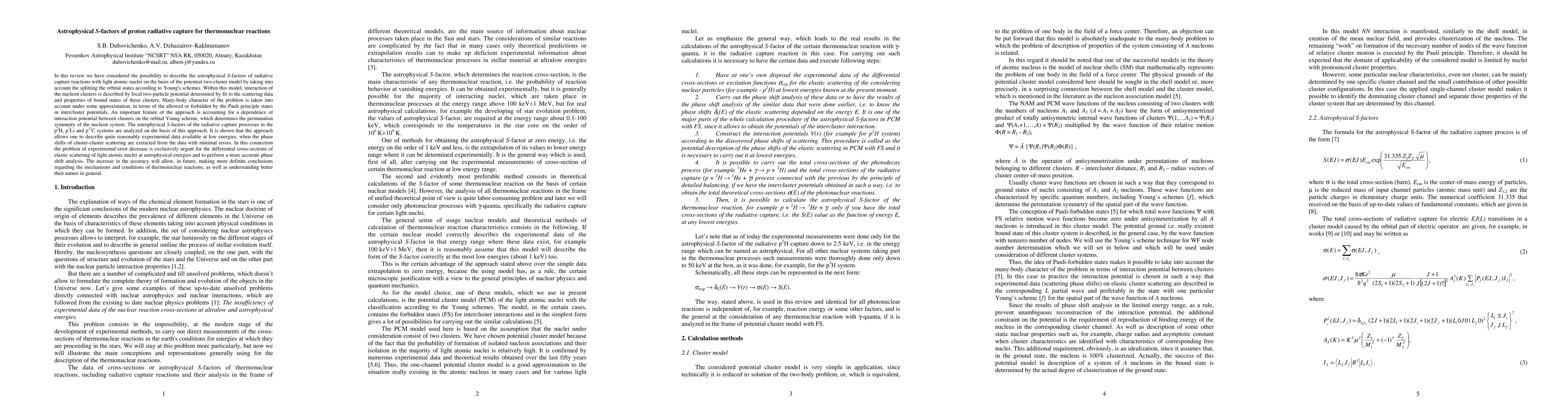 In this review we have considered the possibility to describe the astrophysical S-factors of radiative capture reactions with light atomic nuclei on the basis of the potential two-cluster model by taking into account the splitting the orbital states according to Young's schemes. Within this model, interaction of the nucleon clusters is described by local two-particle potential determined by fit to the scattering data and properties of bound states of these clusters. Many-body character of the problem is taken into account under some approximation, in terms of the allowed or forbidden by the Pauli principle states in intercluster potentials. An important feature of the approach is accounting for a dependence of interaction potential between clusters on the orbital Young scheme, which determines the permutation symmetry of the nucleon system. The astrophysical S-factors of the radiative capture processes in the p2H, p7Li and p12C systems are analyzed on the basis of this approach. It is shown that the approach allows one to describe quite reasonably experimental data available at low energies, when the phase shifts of cluster-cluster scattering are extracted from the data with minimal errors. In this connection the problem of experimental error decrease is exclusively urgent for the differential cross-sections of elastic scattering of light atomic nuclei at astrophysical energies and to perform a more accurate phase shift analysis. The increase in the accuracy will allow, in future, making more definite conclusions regarding the mechanisms and conditions of thermonuclear reactions, as well as understanding better their nature in general.
