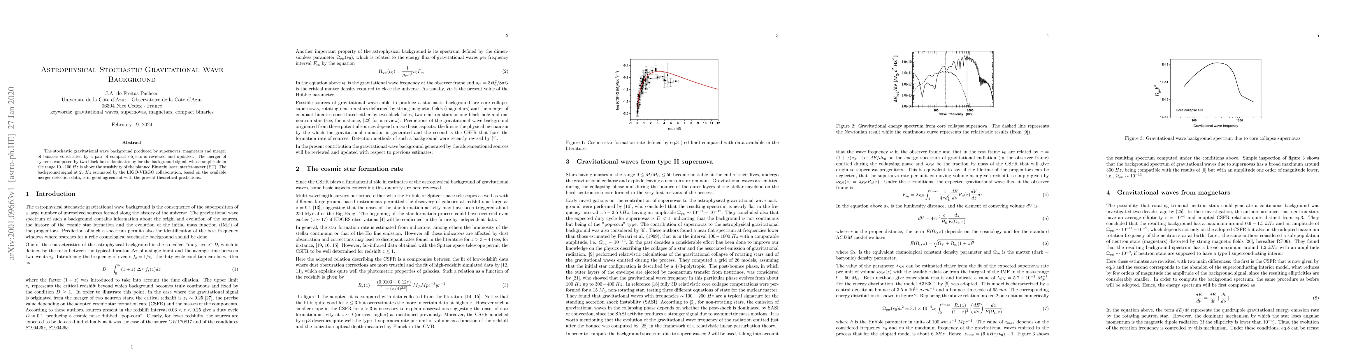 This paper reviews the astrophysical stochastic gravitational wave background, highlighting that black hole mergers dominate the signal, and confirms that the estimated background at 25 Hz aligns well with current theoretical predictions, surpassing the sensitivity of the upcoming Einstein Telescope (ET).