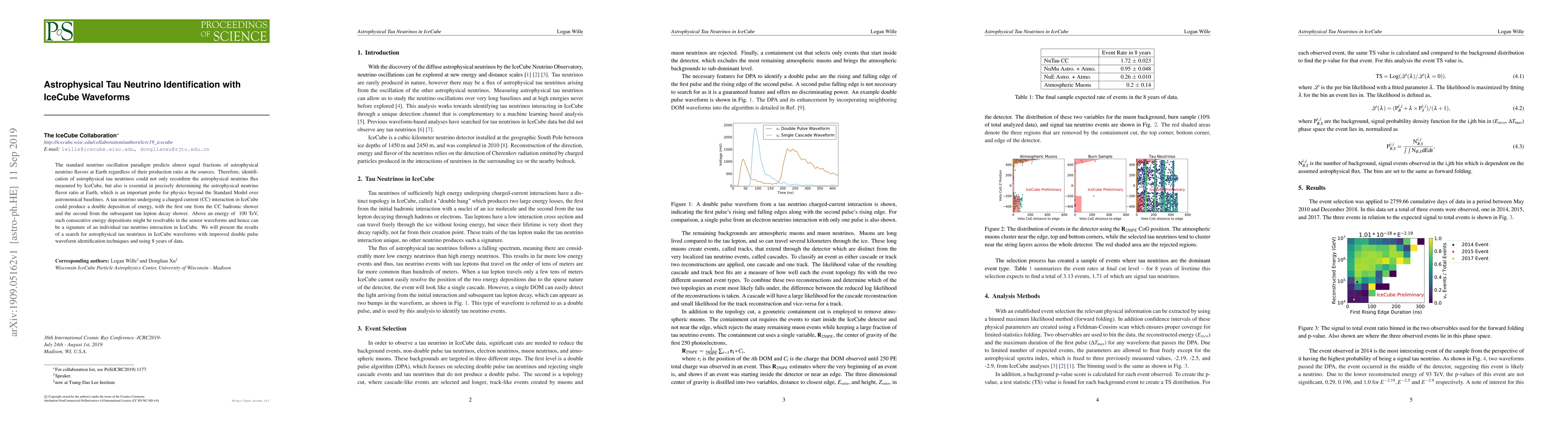 This research investigates the identification of astrophysical tau neutrinos in IceCube data using improved waveform analysis techniques. The study aims to confirm the astrophysical neutrino flux and determine the neutrino flavor ratio, which can provide insights into physics beyond the Standard Model.