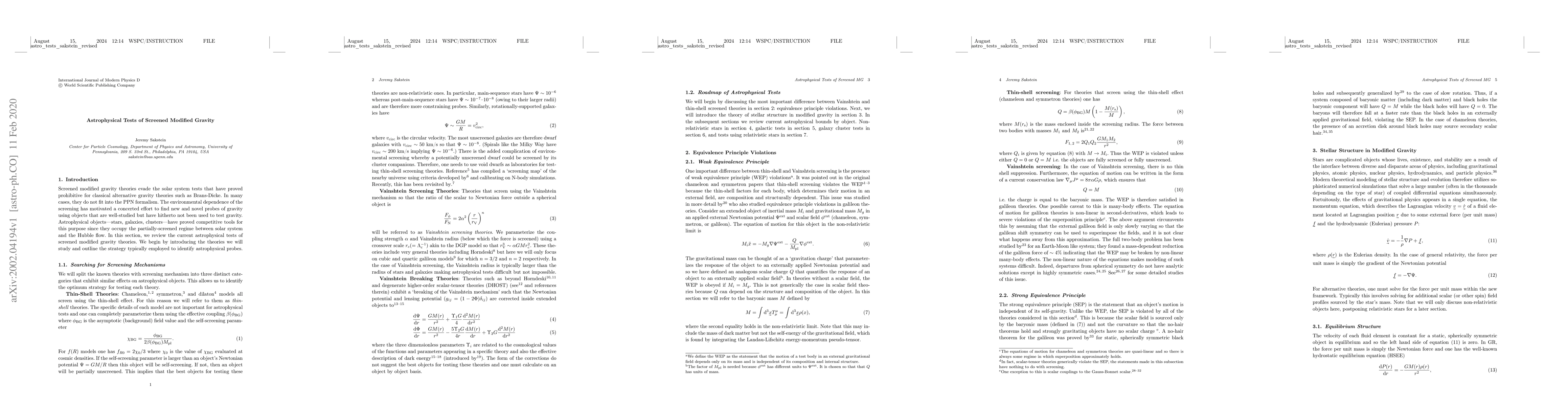 This paper reviews astrophysical tests of screened modified gravity, focusing on how these theories evade solar system constraints and exploring new probes using stars, galaxies, and clusters to examine the partially-screened regime.