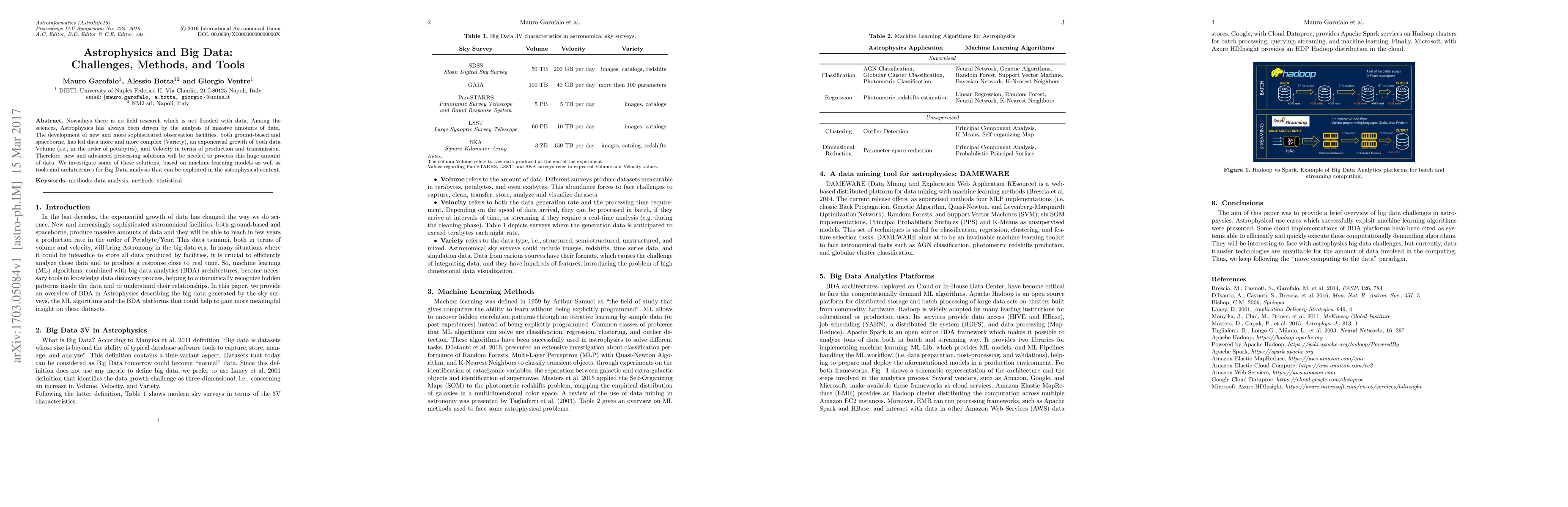 This paper explores the challenges and advanced methods for processing the vast, complex, and rapidly growing data in astrophysics, focusing on machine learning models and Big Data tools and architectures to address these issues.