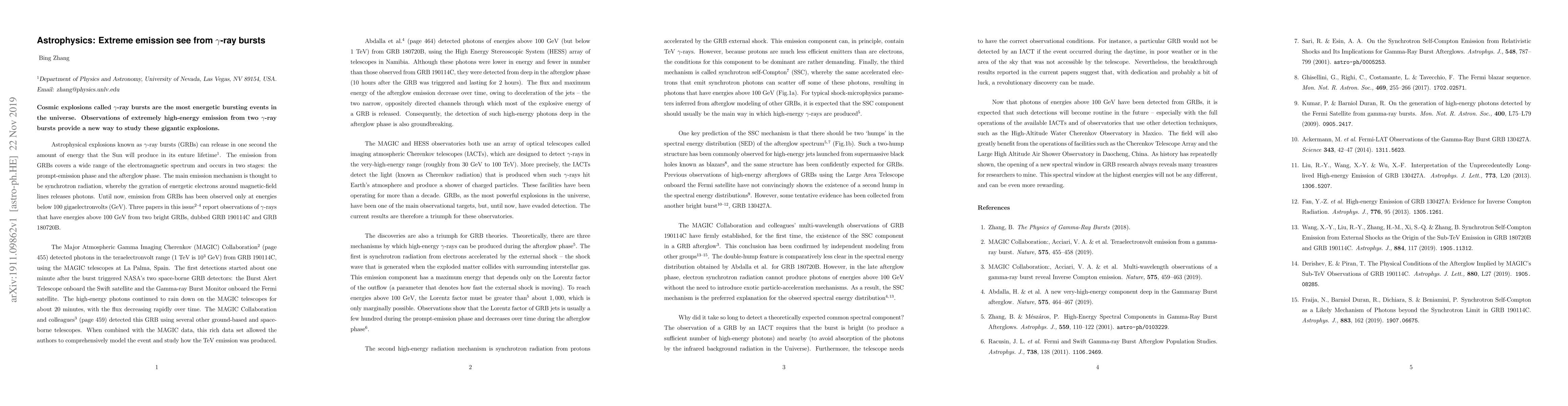 Cosmic explosions called $\gamma$-ray bursts are the most energetic bursting events in the universe. Observations of extremely high-energy emission from two $\gamma$-ray bursts provide a new way to study these gigantic explosions.