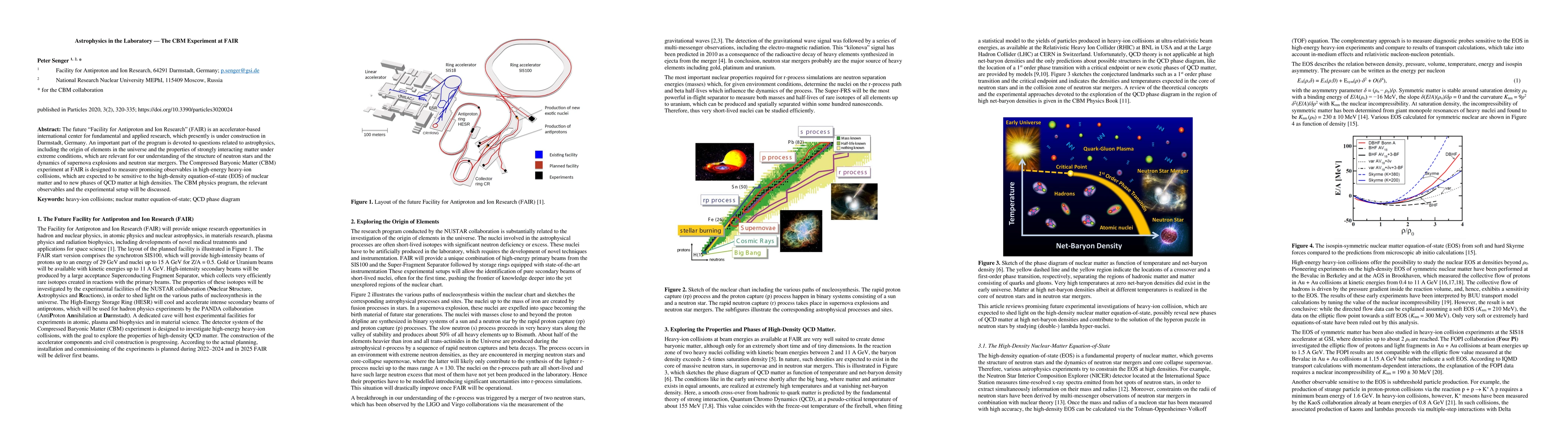 The CBM experiment at FAIR aims to explore the high-density equation of state of nuclear matter and new phases of QCD matter through high-energy heavy-ion collisions, contributing to our understanding of neutron stars and astrophysical phenomena. The experimental setup is designed to measure key observables relevant to these investigations.