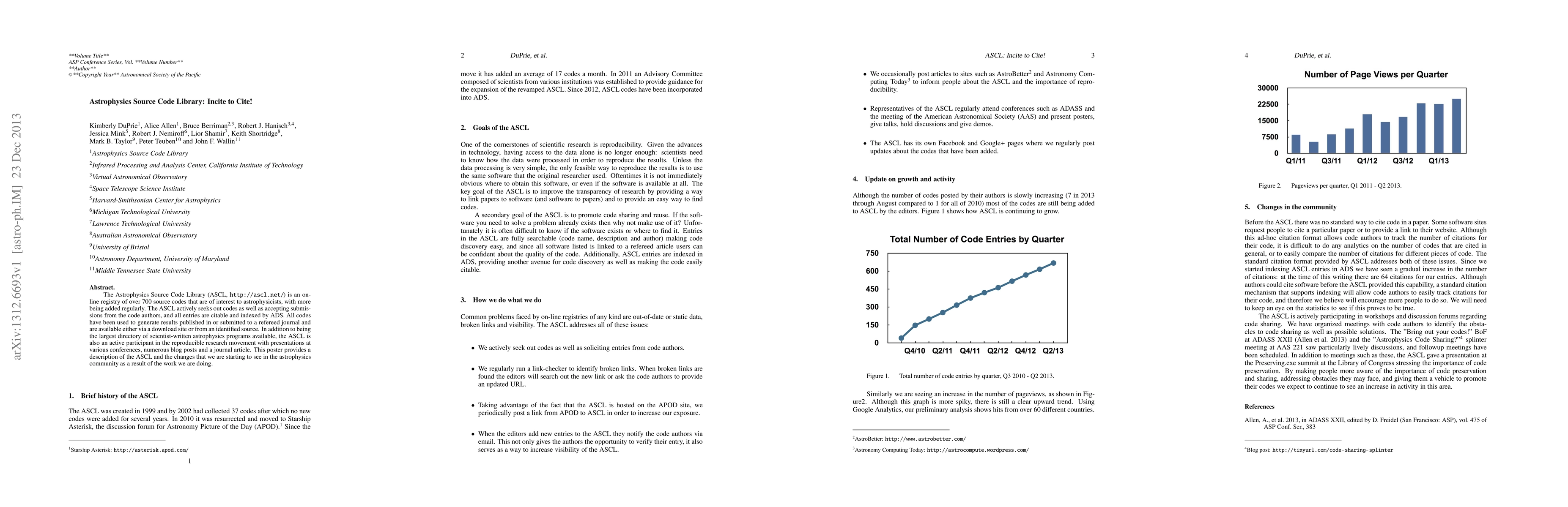 The Astrophysics Source Code Library (ASCL) is a comprehensive online registry of over 700 citable astrophysics codes, actively contributing to the reproducible research movement and fostering community engagement through presentations and blog posts. The ASCL enhances scientific transparency by indexing all codes used in refereed publications.