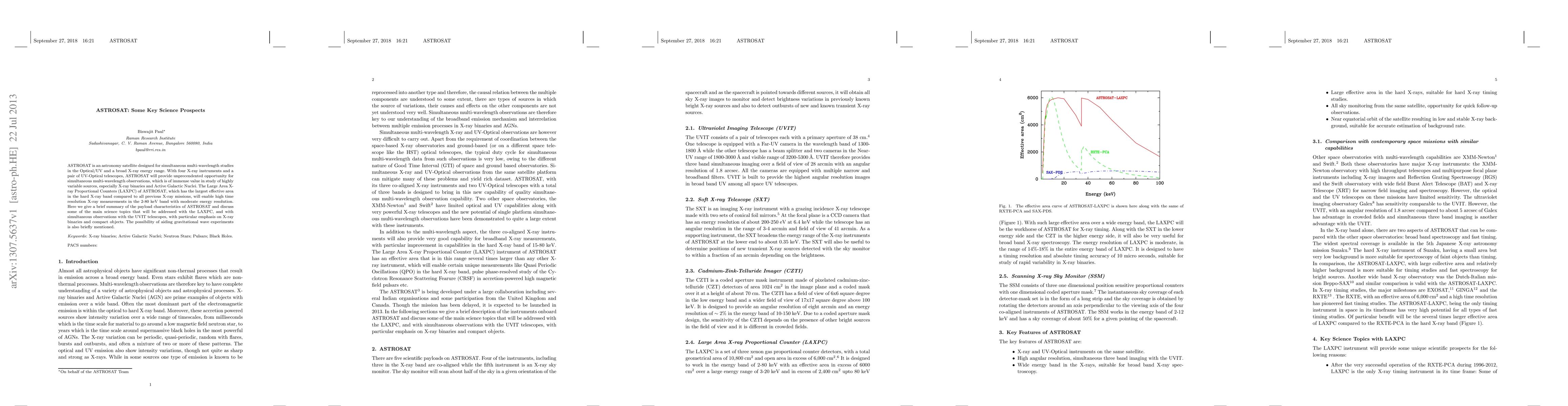 ASTROSAT is an astronomy satellite designed for simultaneous multi-wavelength studies in the Optical/UV and a broad X-ray energy range. With four X-ray instruments and a pair of UV-Optical telescopes, ASTROSAT will provide unprecendented opportunity for simultaneous multi-wavelength observations, which is of immense value in study of highly variable sources, especially X-ray binaries and Active Galactic Nuclei. The Large Area X-ray Proportional Counters (LAXPC) of ASTROSAT, which has the largest effective area in the hard X-ray band compared to all previous X-ray missions, will enable high time resolution X-ray measurements in the 2-80 keV band with moderate energy resolution. Here we give a brief summary of the payload characteristics of ASTROSAT and discuss some of the main science topics that will be addressed with the LAXPC, and with simultaneous observations with the UVIT telescopes, with particular emphasis on X-ray binaries and compact objects. The possibility of aiding gravitational wave experiments is also briefly mentioned.