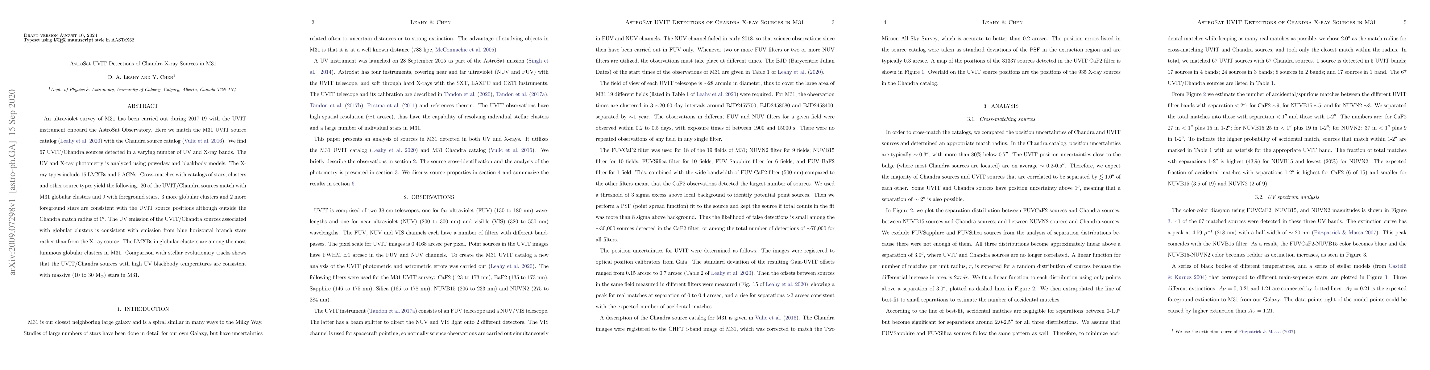 This paper reports the detection of 67 ultraviolet (UV) sources in M31 matched with Chandra X-ray sources using the UVIT instrument on AstroSat. The study finds that UV emission from globular clusters is likely from blue horizontal branch stars rather than X-ray sources, while the most luminous X-ray sources in these clusters are low-mass X-ray binaries (LMXBs).