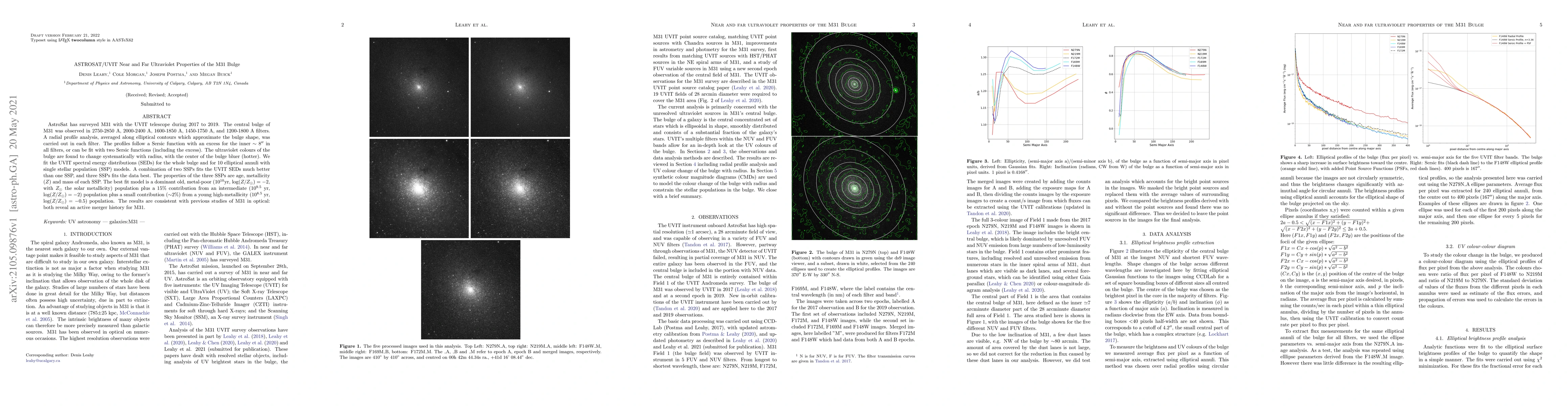 The research utilized AstroSat's UVIT instrument to survey M31's bulge from 2017 to 2019, observing in five UV filters. Radial profiles were analyzed along elliptical contours approximating the bulge's shape, fitting Sersic functions and exploring double Sersic and Sersic+Gaussian models.