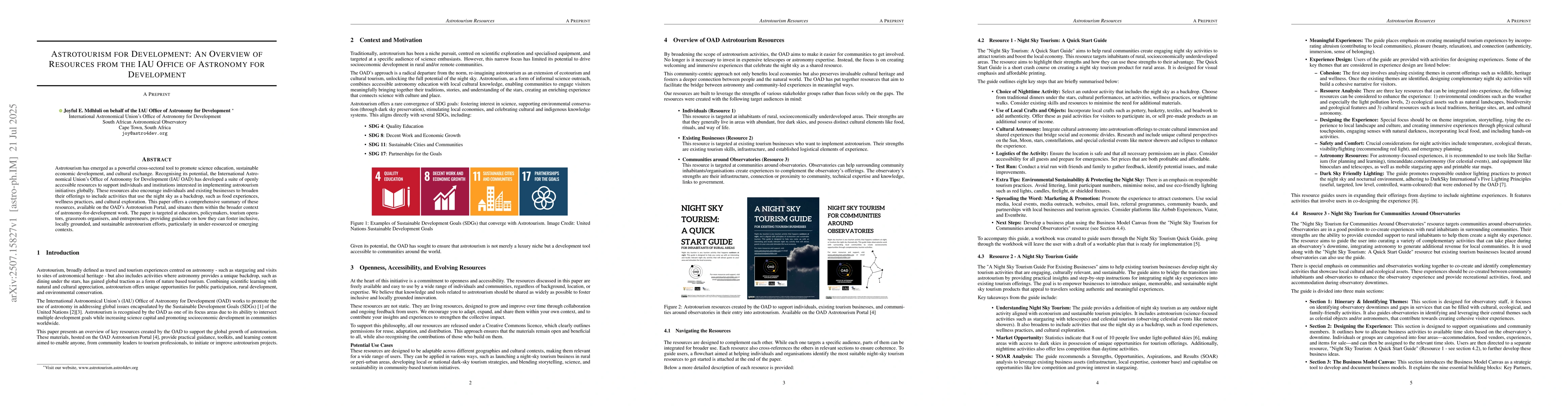 Astrotourism has emerged as a powerful cross sectoral tool to promote science education, sustainable economic development, and cultural exchange. Recognising its potential, the International Astronomical Union's Office of Astronomy for Development (IAU OAD) has developed a suite of openly accessible resources to support individuals and institutions interested in implementing astrotourism initiatives globally. These resources also encourage individuals and existing businesses to broaden their offerings to include activities that use the night sky as a backdrop, such as food experiences, wellness practices, and cultural exploration. This paper offers a comprehensive summary of these resources, available on the OAD's Astrotourism Portal, and situates them within the broader context of astronomy for development work. The paper is targeted at educators, policymakers, tourism operators, grassroots organisers, and entrepreneurs, providing guidance on how they can foster inclusive, locally grounded, and sustainable astrotourism efforts, particularly in underresourced or emerging contexts.