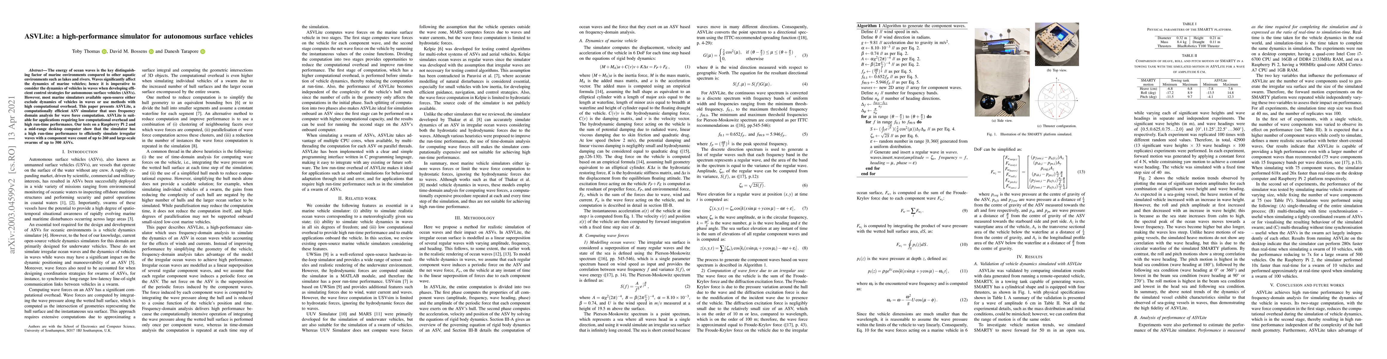 A new simulator for autonomous surface vehicles, ASVLite, is presented that efficiently simulates waves and has low computational overhead, suitable for applications requiring high performance.