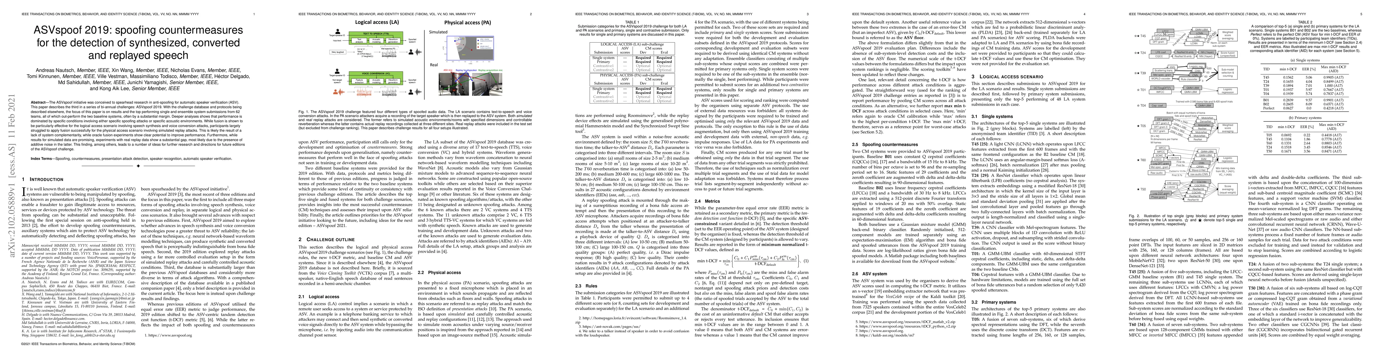 The ASVspoof 2019 challenge evaluated anti-spoofing techniques for automatic speaker verification, with 62 teams outperforming baseline systems. Ensemble methods excelled in speech synthesis and voice conversion attacks, but struggled with replay attacks, highlighting a need for improved system complementarity and addressing the gap between simulated and real-world data.