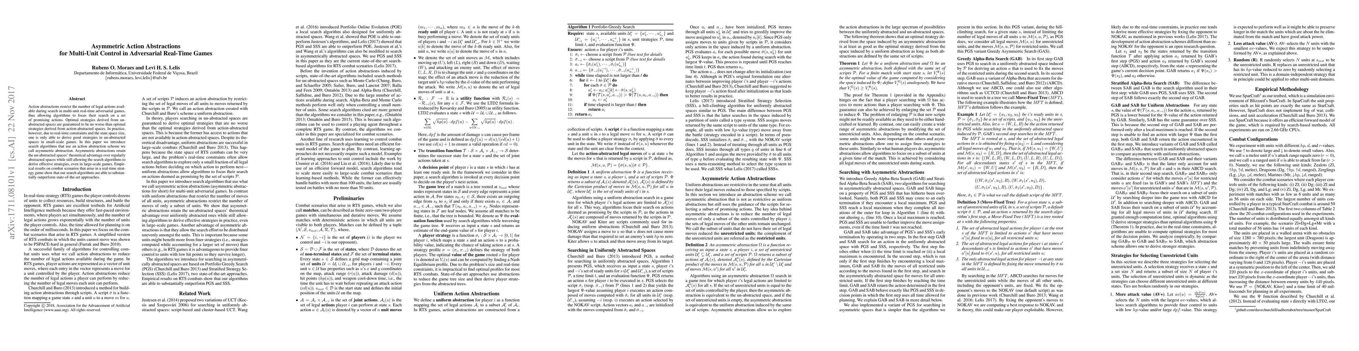 Action abstractions restrict the number of legal actions available during search in multi-unit real-time adversarial games, thus allowing algorithms to focus their search on a set of promising actions. Optimal strategies derived from un-abstracted spaces are guaranteed to be no worse than optimal strategies derived from action-abstracted spaces. In practice, however, due to real-time constraints and the state space size, one is only able to derive good strategies in un-abstracted spaces in small-scale games. In this paper we introduce search algorithms that use an action abstraction scheme we call asymmetric abstraction. Asymmetric abstractions retain the un-abstracted spaces' theoretical advantage over regularly abstracted spaces while still allowing the search algorithms to derive effective strategies, even in large-scale games. Empirical results on combat scenarios that arise in a real-time strategy game show that our search algorithms are able to substantially outperform state-of-the-art approaches.