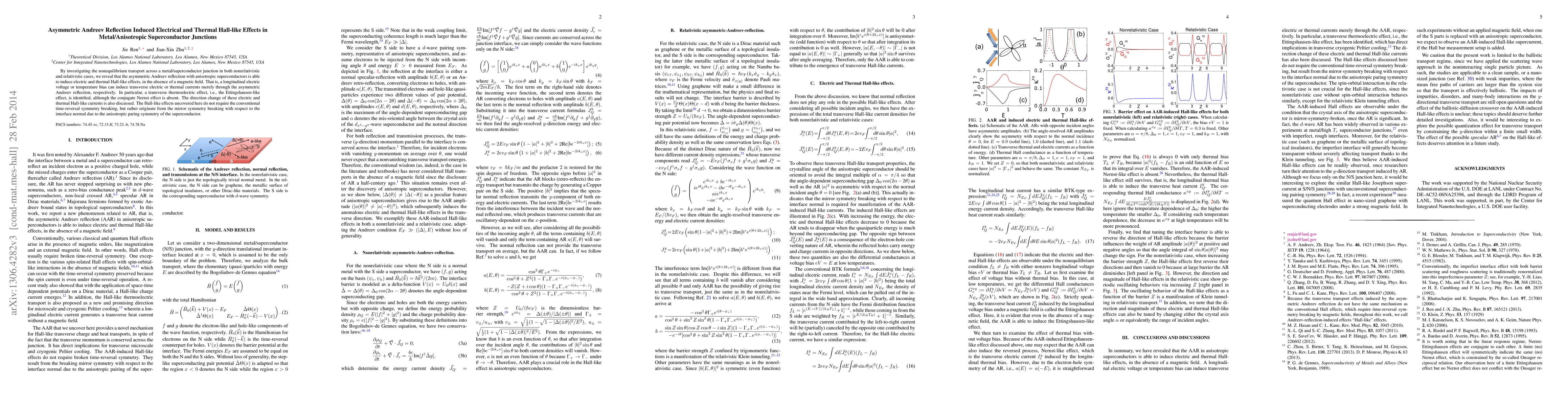 By investigating the nonequilibrium transport across a metal/superconductor junction in both nonrelativistic and relativistic cases, we reveal that the asymmetric Andreev reflection with anisotropic superconductors is able to induce the electric and thermal Hall-like effect, in the absence of magnetic field. That is, a longitudinal electric voltage or temperature bias can induce transverse electric or thermal currents merely through the asymmetric Andreev reflection, respectively. In particular, a transverse thermoelectric effect, i.e., the Ettingshausen-like effect, is identified, although the conjugate Nernst effect is absent. The direction change of these electric and thermal Hall-like currents is also discussed. The Hall-like effects uncovered here do not require the conventional time-reversal symmetry breaking, but rather originate from the mirror symmetry breaking with respect to the interface normal due to the anisotropic paring symmetry of the superconductor.
