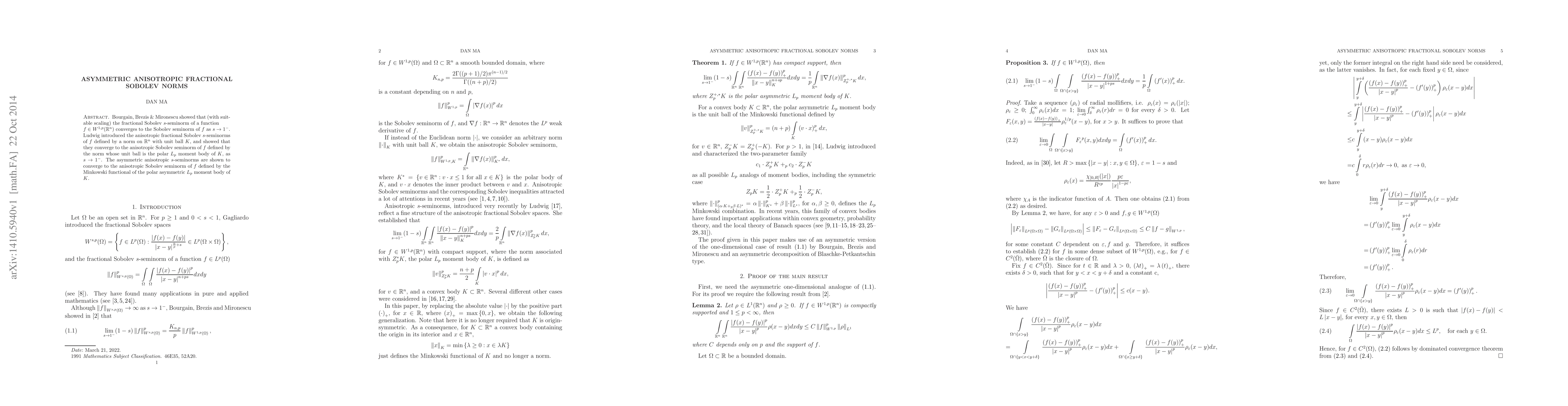 Bourgain, Brezis & Mironescu showed that (with suitable scaling) the fractional Sobolev $s$-seminorm of a function $f\in W^{1,p}(\mathbb{R}^n)$ converges to the Sobolev seminorm of $f$ as $s\rightarrow1^-$. Ludwig introduced the anisotropic fractional Sobolev $s$-seminorms of $f$ defined by a norm on $\mathbb{R}^n$ with unit ball $K$, and showed that they converge to the anisotropic Sobolev seminorm of $f$ defined by the norm whose unit ball is the polar $L_p$ moment body of $K$, as $s\rightarrow1^-$. The asymmetric anisotropic $s$-seminorms are shown to converge to the anisotropic Sobolev seminorm of $f$ defined by the Minkowski functional of the polar asymmetric $L_p$ moment body of $K$.