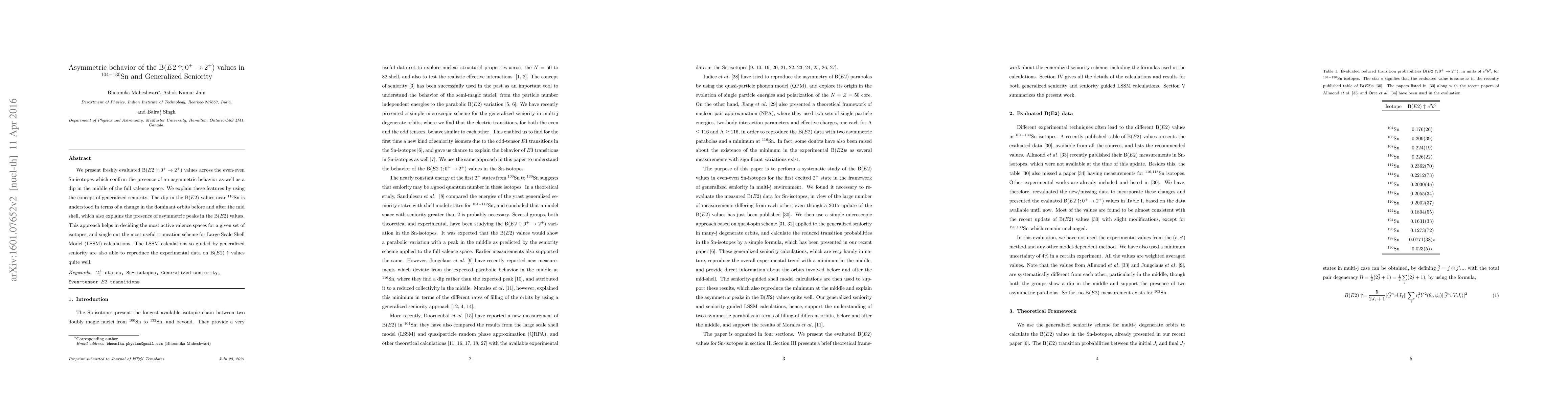 Researchers evaluated even-even Sn-isotopes using a new approach called Generalized Seniority, finding asymmetric behavior in B(E2) values with a dip near the mid-shell. This helps decide active valence spaces for Large Scale Shell Model calculations.