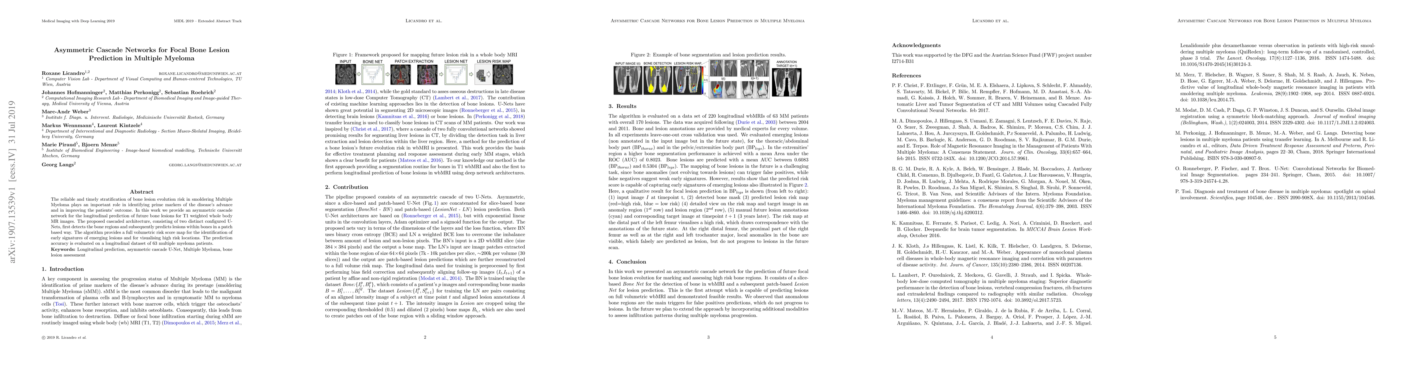 A new algorithm uses asymmetric cascade networks to predict future bone lesions in patients with multiple myeloma from MRI images, providing a risk score map for early detection and visualization of high-risk locations.