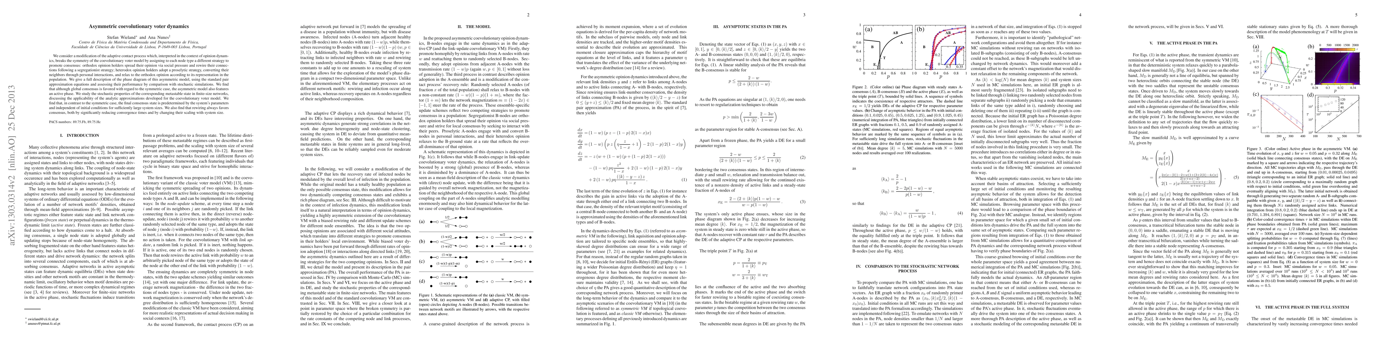 The paper presents a detailed phase diagram and stochastic analysis of an asymmetric coevolutionary voter model, enhancing the understanding of consensus formation in adaptive networks with different node strategies.