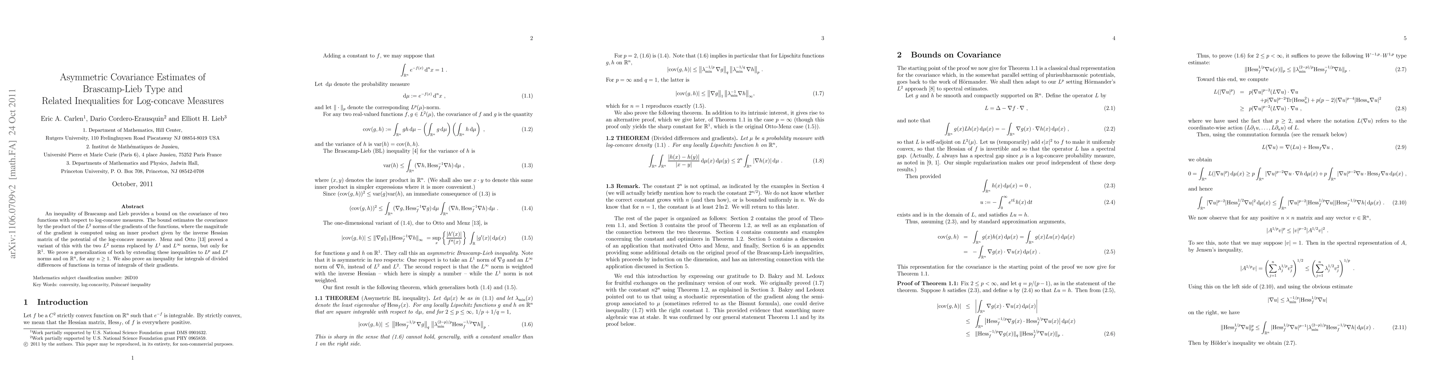 Researchers generalize Brascamp-Lieb inequalities to $L^p$ and $L^q$ norms in $ R^n$, providing bounds on covariance for log-concave measures with improved flexibility.