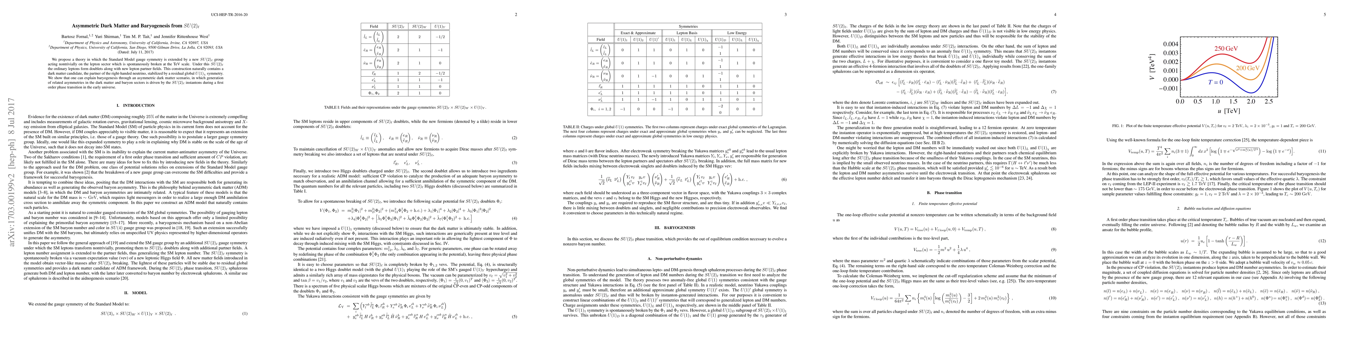 This paper proposes an extended Standard Model with an $SU(2)_\ell$ symmetry for leptons, leading to a dark matter candidate and a mechanism for baryogenesis via asymmetric dark matter, driven by $SU(2)_\ell$ instantons during a phase transition.