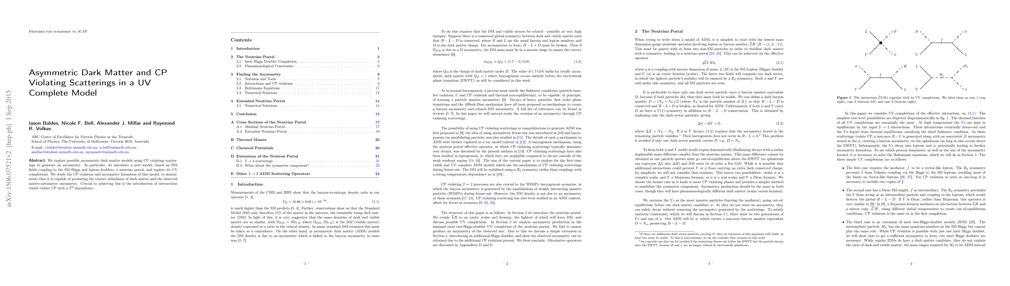 We explore possible asymmetric dark matter models using CP violating scatterings to generate an asymmetry. In particular, we introduce a new model, based on DM fields coupling to the SM Higgs and lepton doublets, a neutrino portal, and explore its UV completions. We study the CP violation and asymmetry formation of this model, to demonstrate that it is capable of producing the correct abundance of dark matter and the observed matter-antimatter asymmetry. Crucial to achieving this is the introduction of interactions which violate CP with a $T^{2}$ dependence.