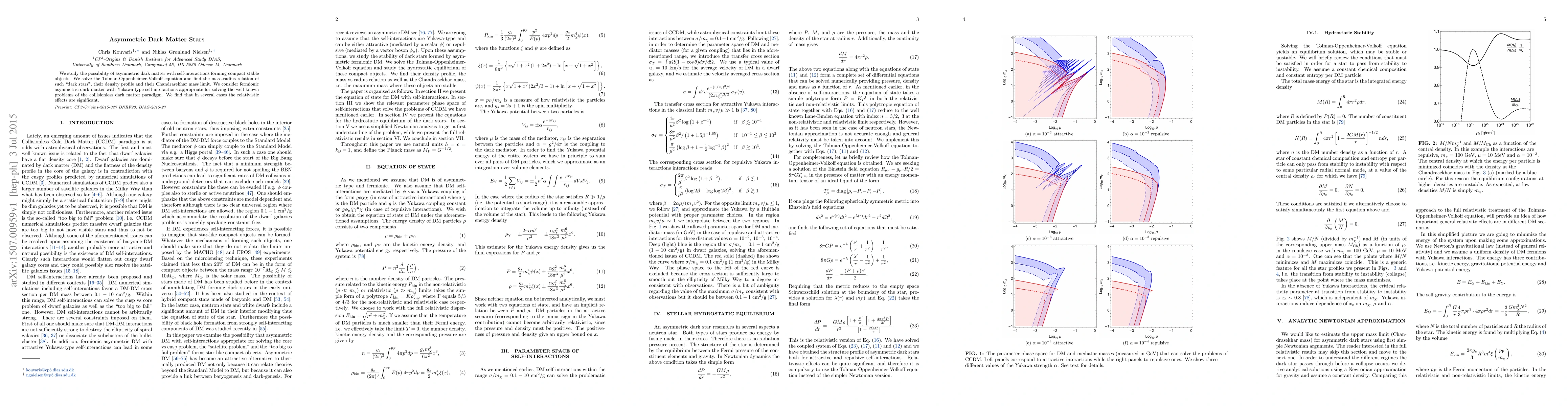 This paper explores the formation of stable, compact objects—referred to as "dark stars"—from asymmetric dark matter with self-interactions. The study derives the mass-radius relation, density profile, and Chandrasekhar mass limit for these hypothetical entities, highlighting the significance of relativistic effects in certain scenarios.