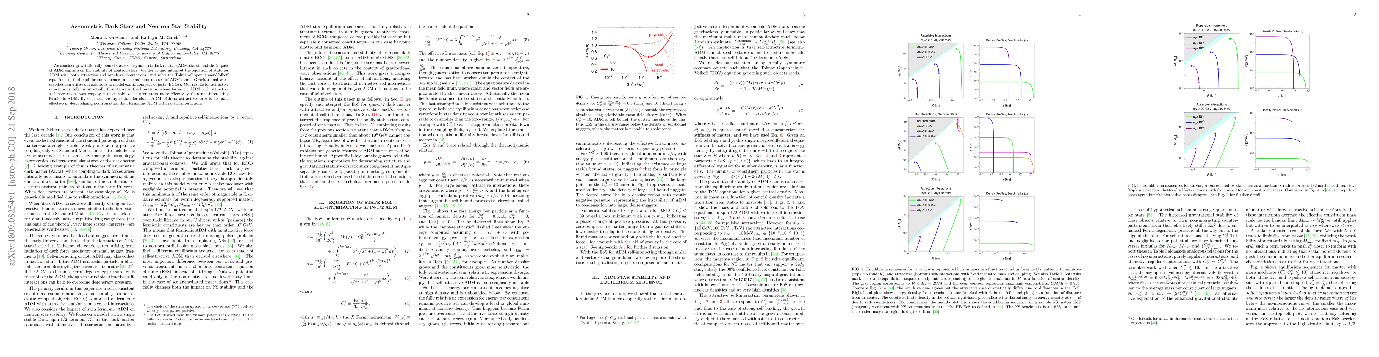 We consider gravitationally bound states of asymmetric dark matter (ADM stars), and the impact of ADM capture on the stability of neutron stars. We derive and interpret the equation of state for ADM with both attractive and repulsive interactions, and solve the Tolman-Oppenheimer-Volkoff equations to find equilibrium sequences and maximum masses of ADM stars. Gravitational wave searches can utilize our solutions to model exotic compact objects (ECOs). Our results for attractive interactions differ substantially from those in the literature, where fermionic ADM with attractive self-interactions was employed to destabilize neutron stars more effectively than non-interacting fermionic ADM. By contrast, we argue that fermionic ADM with an attractive force is no more effective in destabilizing neutron stars than fermionic ADM with no self-interactions.