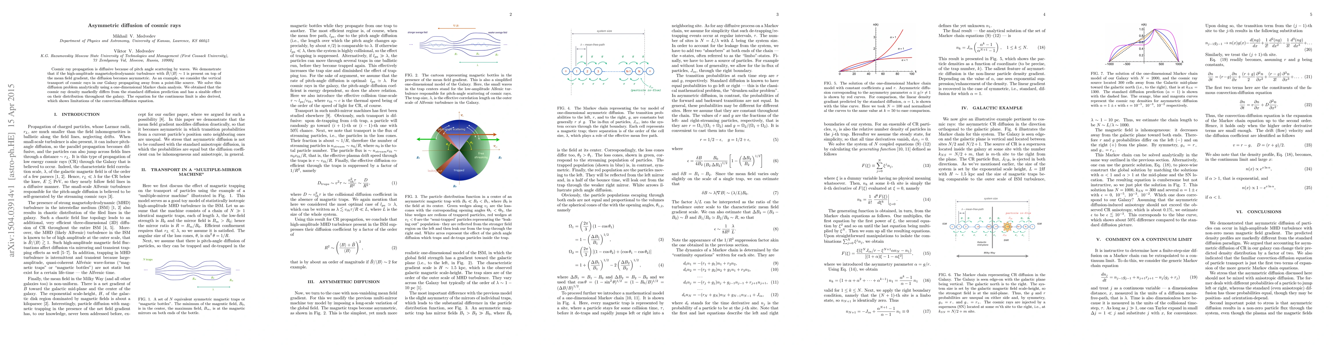This paper demonstrates that high-amplitude magnetohydrodynamic turbulence can cause asymmetric diffusion of cosmic rays in the galaxy, deviating from standard predictions. Analytical solutions using a one-dimensional Markov chain reveal significant differences in cosmic ray distribution compared to conventional models.