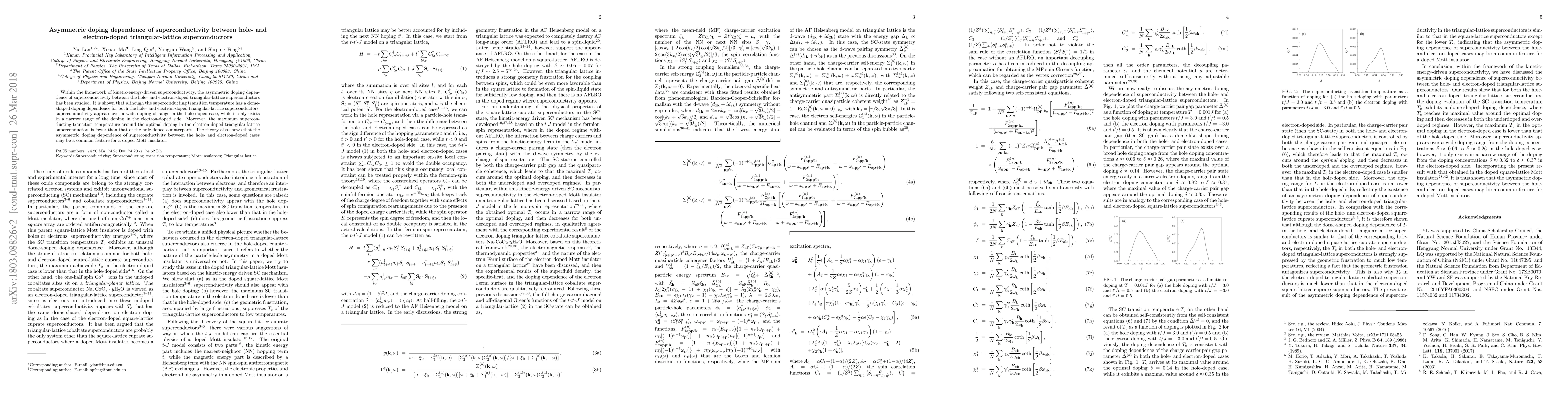 This paper investigates the asymmetric doping dependence of superconductivity in hole- versus electron-doped triangular-lattice superconductors, revealing that superconductivity spans a wider doping range in hole-doped systems but is limited and less intense in electron-doped systems. The findings suggest this asymmetry is a common feature in doped Mott insulators.