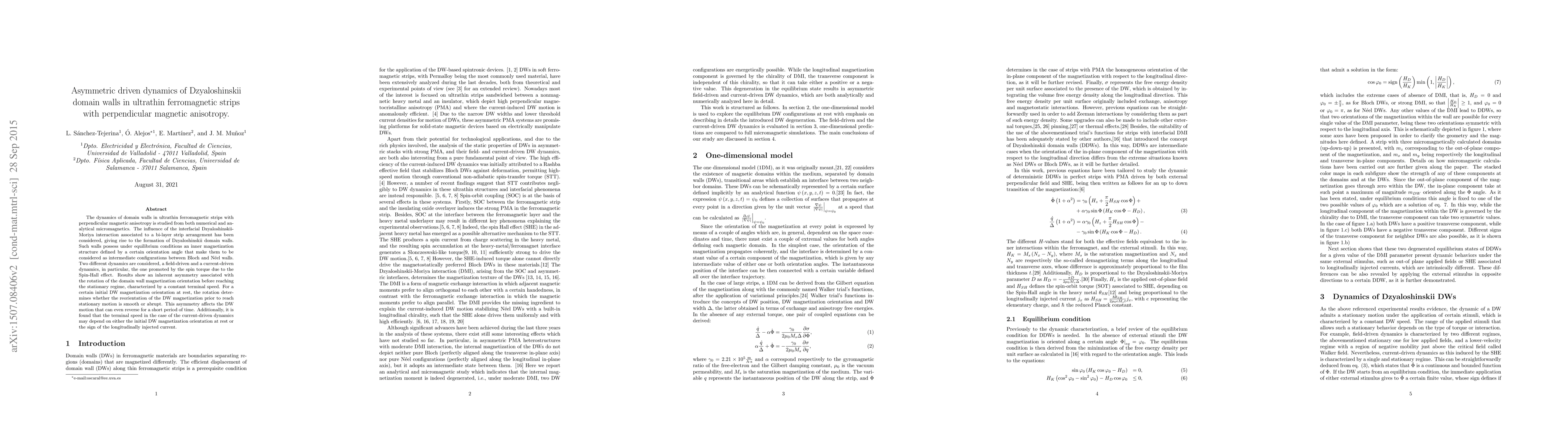 This study investigates the asymmetric dynamics of Dzyaloshinskii domain walls in ultrathin ferromagnetic strips with perpendicular magnetic anisotropy, revealing inherent asymmetry in their rotation and motion. The dynamics depend on the initial wall orientation and can reverse briefly, with terminal speed influenced by both initial orientation and current sign.