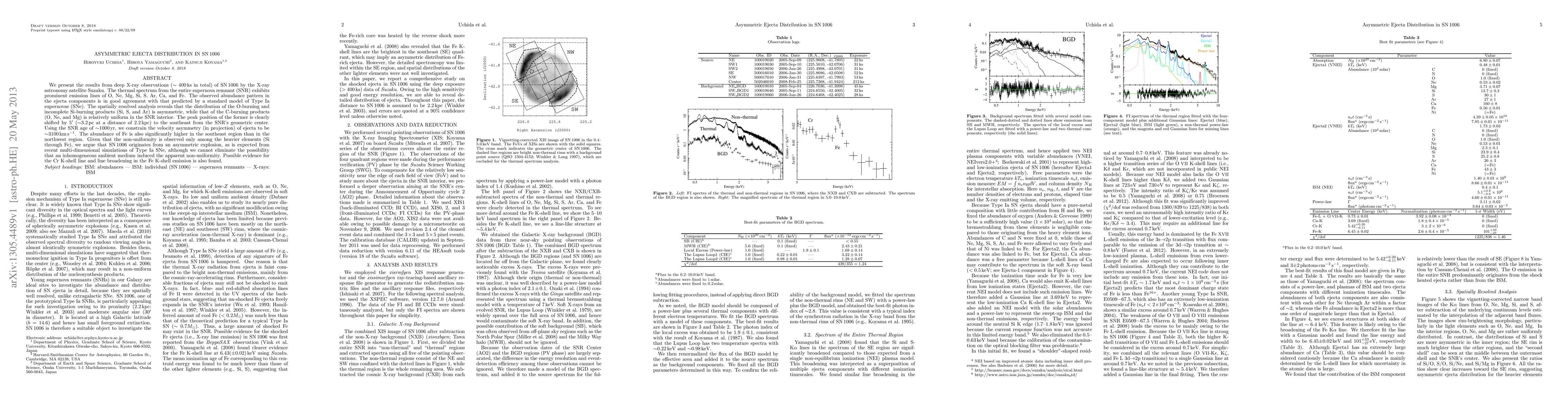 This paper reports on deep X-ray observations of the SN 1006 supernova remnant, revealing an asymmetric distribution of O-burning and Si-burning products, suggesting an asymmetric explosion. The heavier elements' abundances are notably higher in the southeast region, indicating a velocity asymmetry of ~3100 km/s.