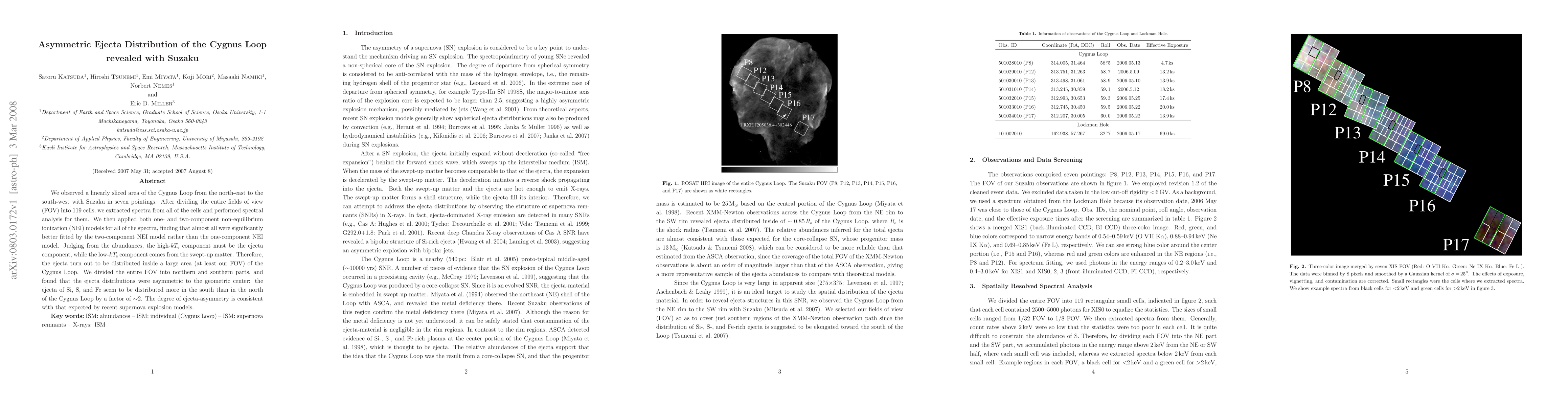 Using Suzaku observations, researchers analyzed the Cygnus Loop's ejecta distribution, finding it asymmetric with more ejecta (Si, S, Fe) in the south than north. This aligns with recent supernova explosion models.