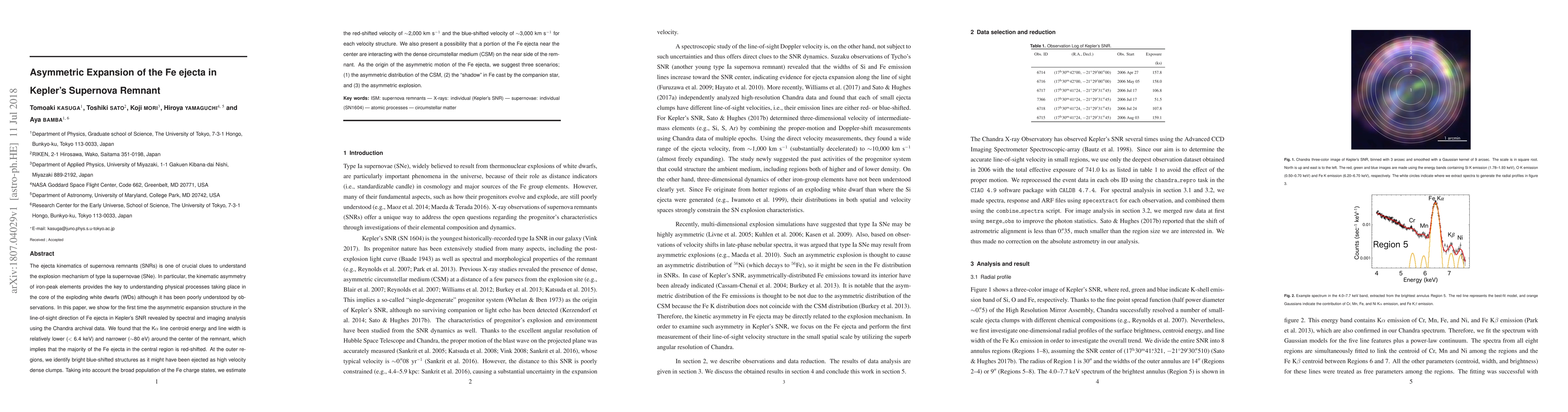 This paper reveals the asymmetric expansion of iron ejecta in Kepler's supernova remnant using Chandra data, showing red-shifted Fe in the center and blue-shifted clumps in the outer regions, suggesting possible interactions with the circumstellar medium and proposing three scenarios for the observed asymmetry.