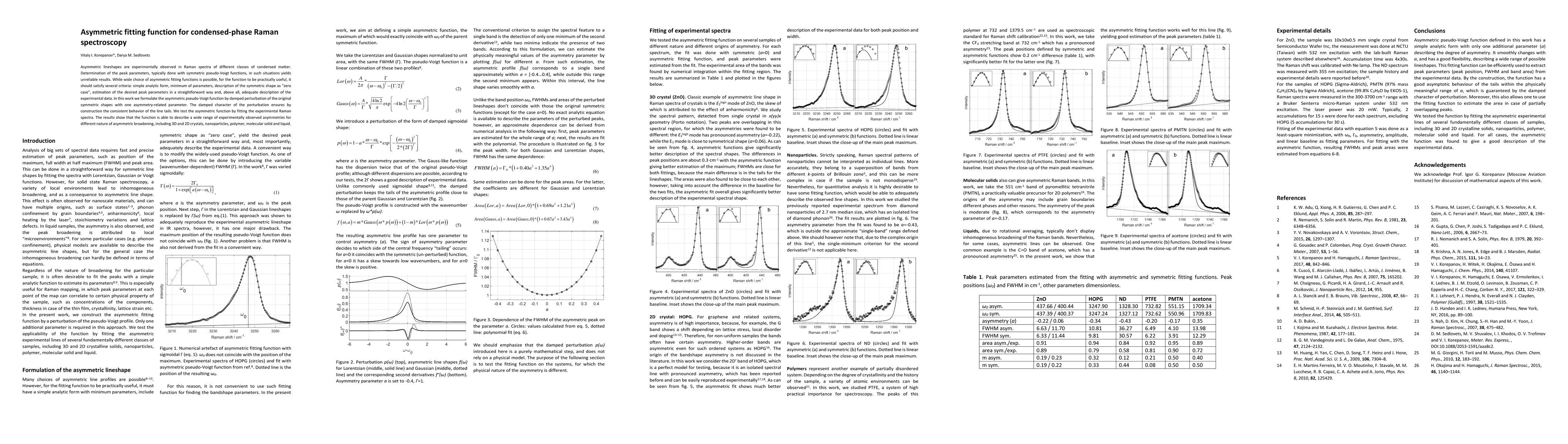 Asymmetric lineshapes are experimentally observed in Raman spectra of different classes of condensed matter. Determination of the peak parameters, typically done with symmetric pseudo-Voigt functions, in such situations yields unreliable results. While wide choice of asymmetric fitting functions is possible, for the function to be practically useful, it should satisfy several criteria: simple analytic form, minimum of parameters, description of the symmetric shape as "zero case", estimation of the desired peak parameters in a straightforward way and, above all, adequate description of the experimental data. In this work we formulate the asymmetric pseudo-Voigt function by damped perturbation of the original symmetric shapes with one asymmetry-related parameter. The damped character of the perturbation ensures by construction the consistent behavior of the line tails. We test the asymmetric function by fitting the experimental Raman spectra. The results show that the function is able to describe a wide range of experimentally observed asymmetries for different nature of asymmetric broadening, including 3D and 2D crystals, nanoparticles, polymer, molecular solid and liquid.