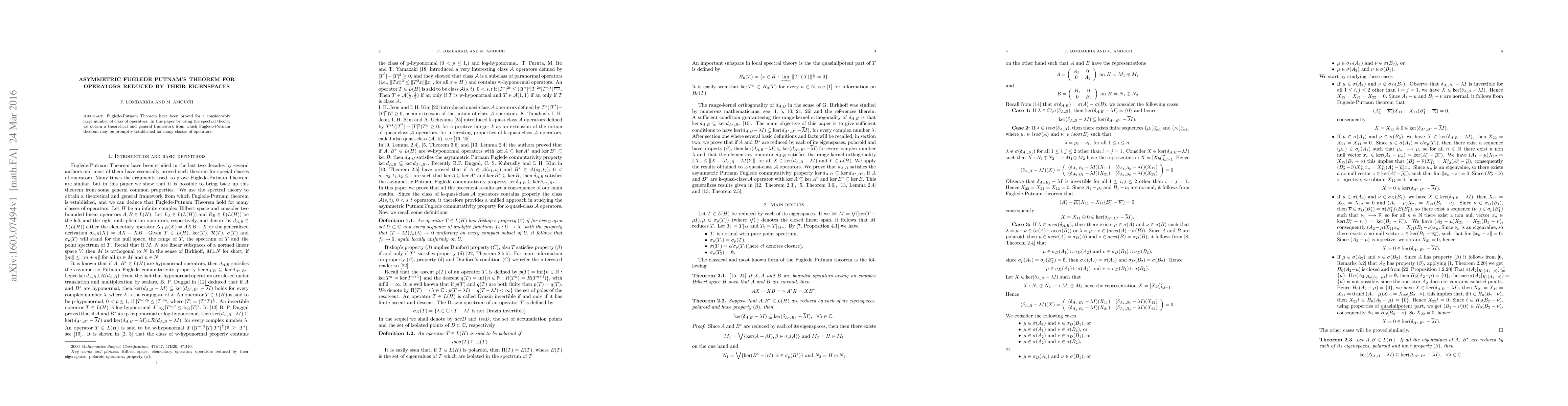 Summary: This paper establishes a theoretical framework using spectral theory to extend the Fuglede-Putnam Theorem to a broader class of operators, particularly those reduced by their eigenspaces. The approach provides a generalized method for proving the theorem for various operator classes.