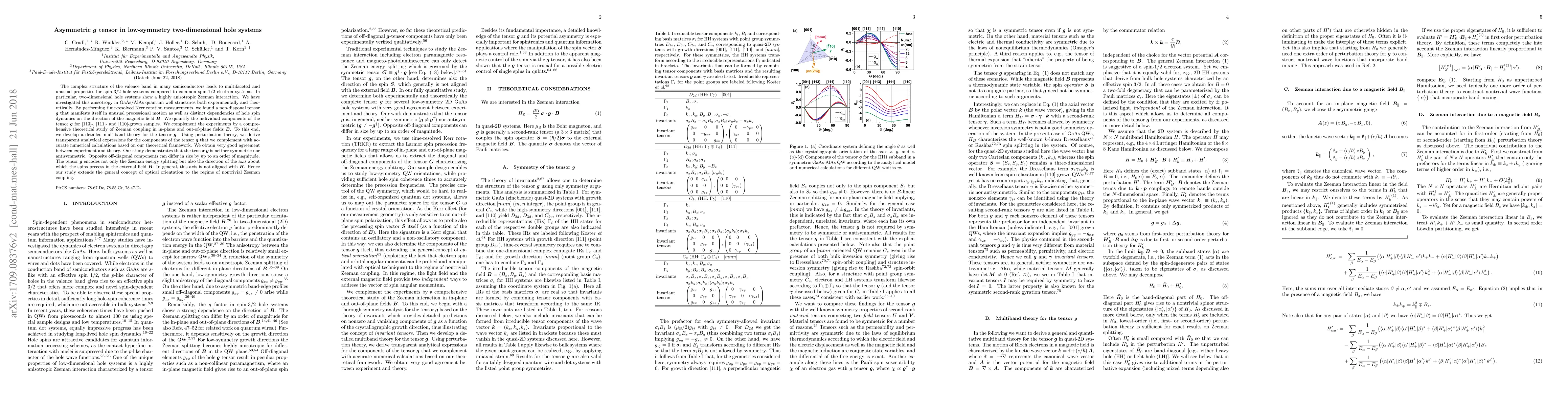 This paper investigates the anisotropic Zeeman spin splitting in two-dimensional hole systems in GaAs/AlAs quantum wells, revealing a non-diagonal $g$ tensor through experimental and theoretical analysis. The study finds significant differences in the tensor's off-diagonal components, demonstrating complex spin dynamics in low-symmetry systems.