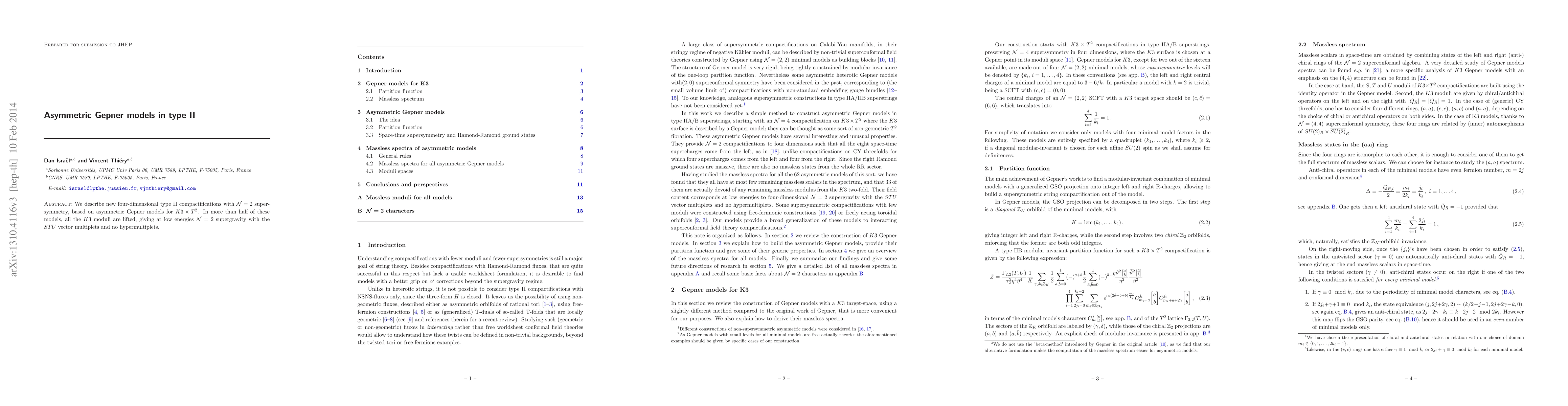 We describe new four-dimensional type II compactifications with N=2 supersymmetry, based on asymmetric Gepner models for K3 x T^2. In more than half of these models, all the K3 moduli are lifted, giving at low energies N=2 supergravity with the STU vector multiplets and no hypermultiplets.