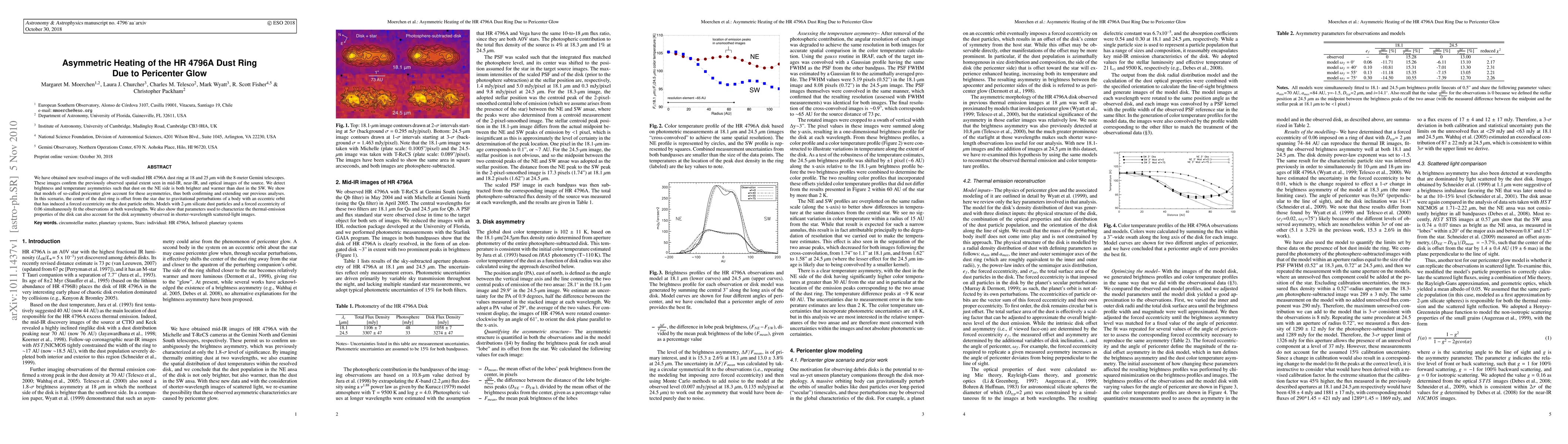 We have obtained new resolved images of the well-studied HR 4796A dust ring at 18 and 25 microns with the 8-meter Gemini telescopes. These images confirm the previously observed spatial extent seen in mid-IR, near-IR, and optical images of the source. We detect brightness and temperature asymmetries such that dust on the NE side is both brighter and warmer than dust in the SW. We show that models of so-called pericenter glow account for these asymmetries, thus both confirming and extending our previous analyses. In this scenario, the center of the dust ring is offset from the star due to gravitational perturbations of a body with an eccentric orbit that has induced a forced eccentricity on the dust particle orbits. Models with 2-micron silicate dust particles and a forced eccentricity of 0.06 simultaneously fit the observations at both wavelengths. We also show that parameters used to characterize the thermal-emission properties of the disk can also account for the disk asymmetry observed in shorter-wavelength scattered-light images.