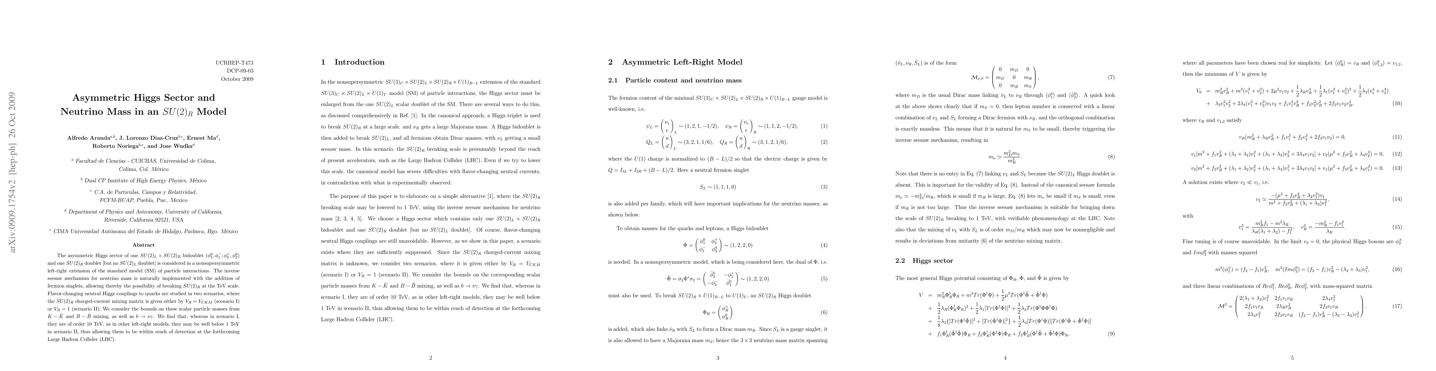 This paper proposes an SU(2)_R model with an asymmetric Higgs sector that naturally explains neutrino mass through the inverse seesaw mechanism. The model predicts flavor-changing neutral Higgs couplings can be suppressed, allowing for particle masses below 1 TeV and potential observability at the Large Hadron Collider.