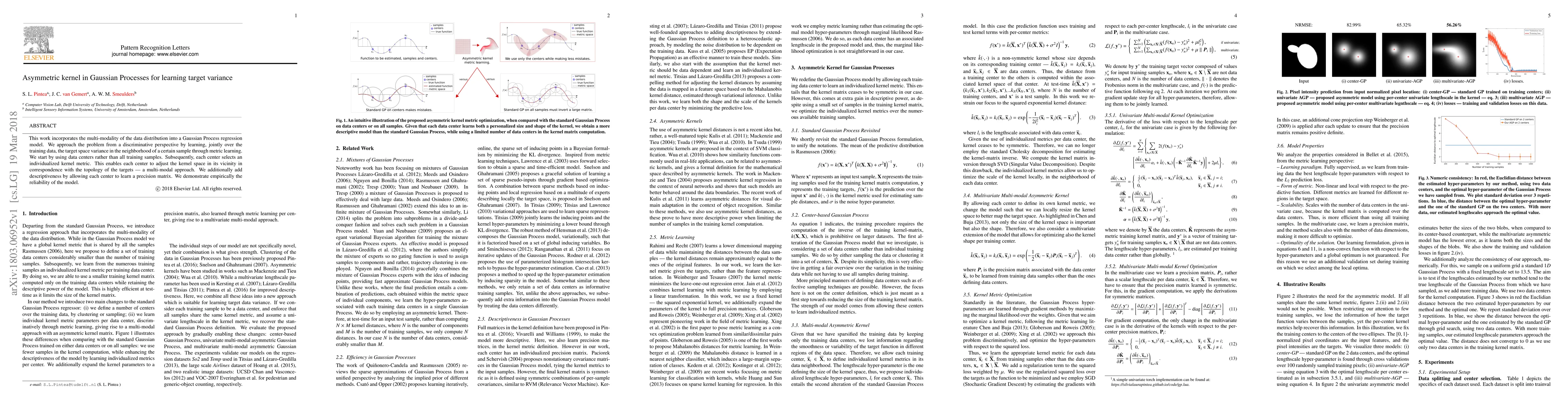 This work incorporates the multi-modality of the data distribution into a Gaussian Process regression model. We approach the problem from a discriminative perspective by learning, jointly over the training data, the target space variance in the neighborhood of a certain sample through metric learning. We start by using data centers rather than all training samples. Subsequently, each center selects an individualized kernel metric. This enables each center to adjust the kernel space in its vicinity in correspondence with the topology of the targets --- a multi-modal approach. We additionally add descriptiveness by allowing each center to learn a precision matrix. We demonstrate empirically the reliability of the model.