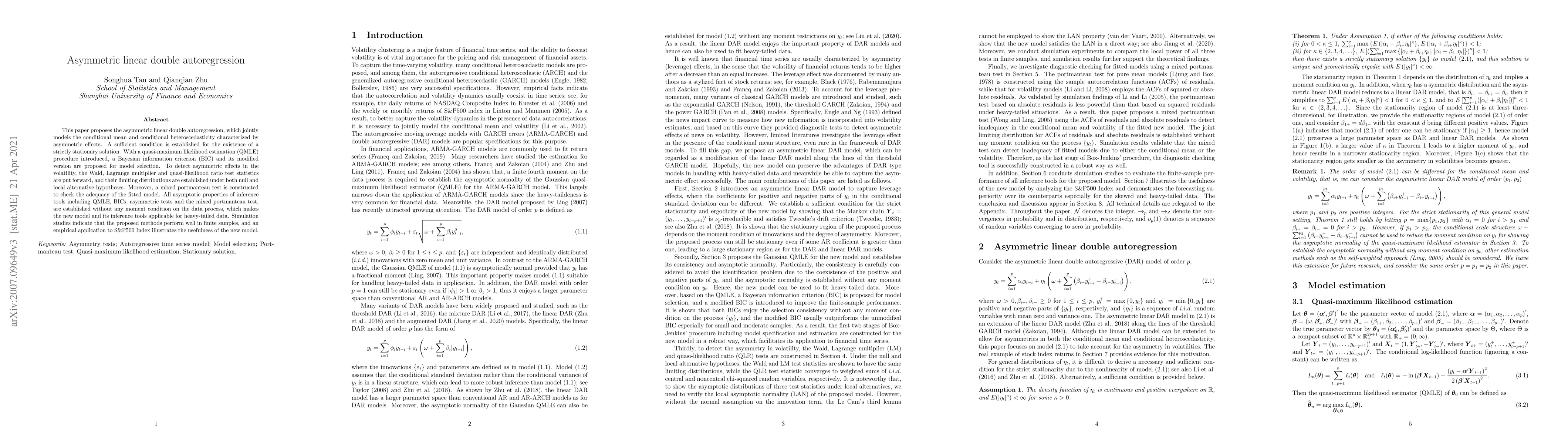 This paper proposes the asymmetric linear double autoregression, which jointly models the conditional mean and conditional heteroscedasticity characterized by asymmetric effects. A sufficient condition is established for the existence of a strictly stationary solution. With a quasi-maximum likelihood estimation (QMLE) procedure introduced, a Bayesian information criterion (BIC) and its modified version are proposed for model selection. To detect asymmetric effects in the volatility, the Wald, Lagrange multiplier and quasi-likelihood ratio test statistics are put forward, and their limiting distributions are established under both null and local alternative hypotheses. Moreover, a mixed portmanteau test is constructed to check the adequacy of the fitted model. All asymptotic properties of inference tools including QMLE, BICs, asymmetric tests and the mixed portmanteau test, are established without any moment condition on the data process, which makes the new model and its inference tools applicable for heavy-tailed data. Simulation studies indicate that the proposed methods perform well in finite samples, and an empirical application to S\&P500 Index illustrates the usefulness of the new model.