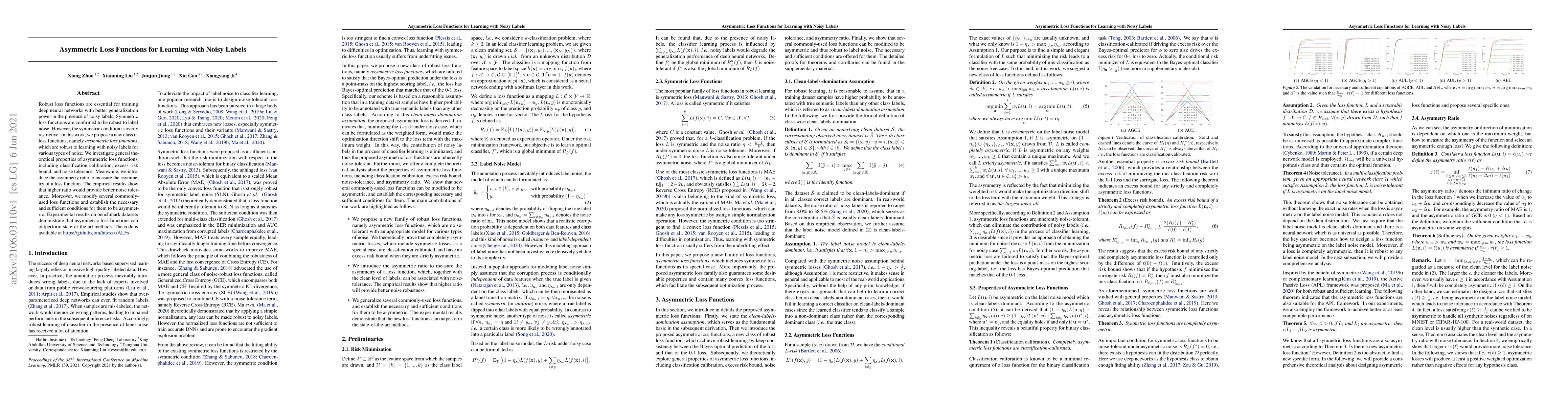 This paper proposes asymmetric loss functions to improve deep neural network training under noisy labels, demonstrating better generalization. It introduces theoretical properties and an asymmetry ratio to measure effectiveness, showing empirical results that higher asymmetry ratios correlate with better noise tolerance.