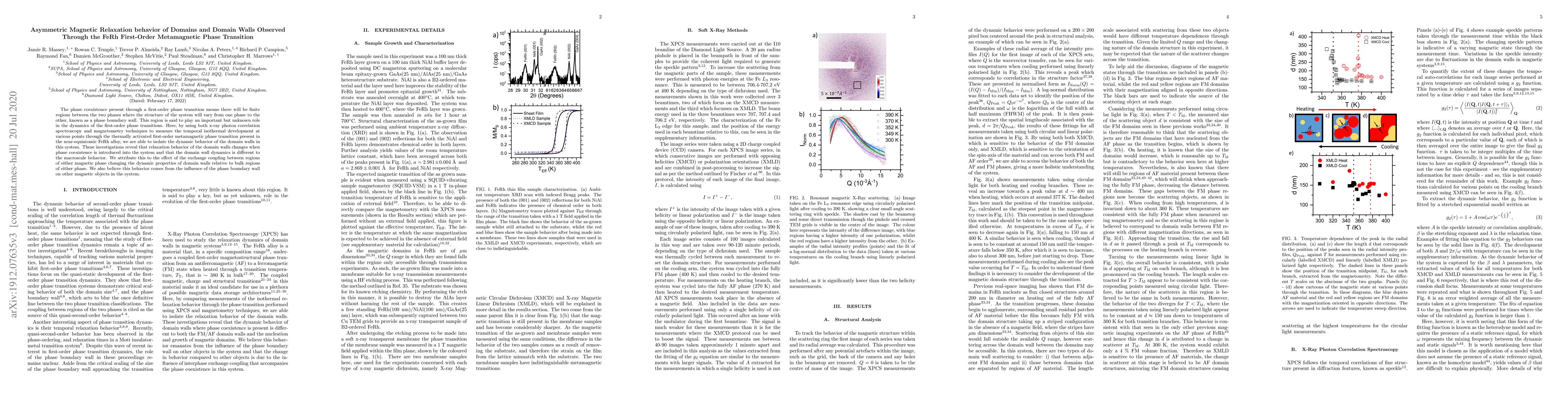 The phase coexistence present through a first-order phase transition means there will be finite regions between the two phases where the structure of the system will vary from one phase to the other, known as a phase boundary wall. This region is said to play an important but unknown role in the dynamics of the first-order phase transitions. Here, by using both x-ray photon correlation spectroscopy and magnetometry techniques to measure the temporal isothermal development at various points through the thermally activated first-order metamagnetic phase transition present in the near-equiatomic FeRh alloy, we are able to isolate the dynamic behavior of the domain walls in this system. These investigations reveal that relaxation behavior of the domain walls changes when phase coexistence is introduced into the system and that the domain wall dynamics is different to the macroscale behavior. We attribute this to the effect of the exchange coupling between regions of either magnetic phase changing the dynamic properties of domain walls relative to bulk regions of either phase. We also believe this behavior comes from the influence of the phase boundary wall on other magnetic objects in the system.