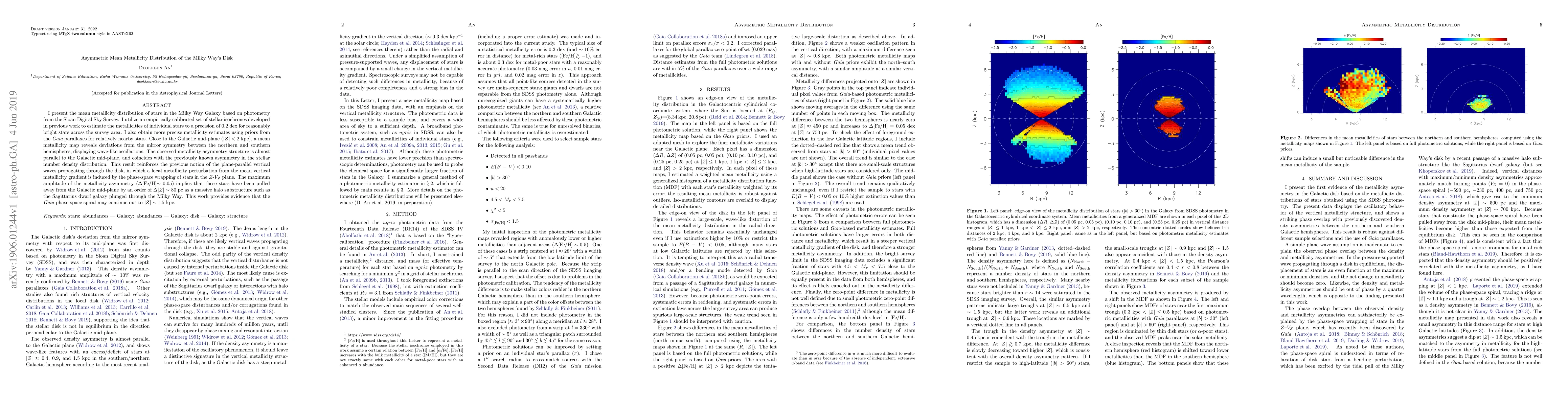The research presents a mean metallicity map of the Milky Way's disk, revealing wave-like asymmetries near the mid-plane. These asymmetries, with a maximum amplitude of ~0.05 dex, suggest stars have been displaced by ~80 pc due to massive halo substructure interactions, like the Sagittarius dwarf galaxy. The findings support the existence of plane-parallel vertical waves in the disk and extend the Gaia phase-space spiral to |Z|~1.5 kpc.