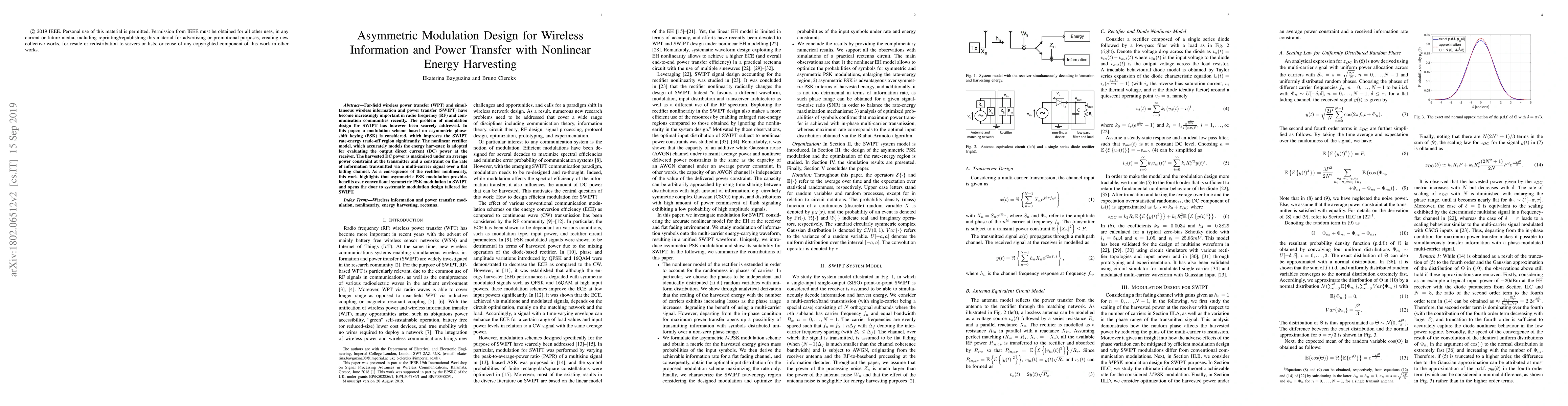 Far-field wireless power transfer (WPT) and simultaneous wireless information and power transfer (SWIPT) have become increasingly important in radio frequency (RF) and communication communities recently. The problem of modulation design for SWIPT has however been scarcely addressed. In this paper, a modulation scheme based on asymmetric phase-shift keying (PSK) is considered, which improves the SWIPT rate-energy tradeoff region significantly. The nonlinear rectifier model, which accurately models the energy harvester, is adopted for evaluating the output direct current (DC) power at the receiver. The harvested DC power is maximized under an average power constraint at the transmitter and a constraint on the rate of information transmitted via a multi-carrier signal over a flat fading channel. As a consequence of the rectifier nonlinearity, this work highlights that asymmetric PSK modulation provides benefits over conventional symmetric PSK modulation in SWIPT and opens the door to systematic modulation design tailored for SWIPT.