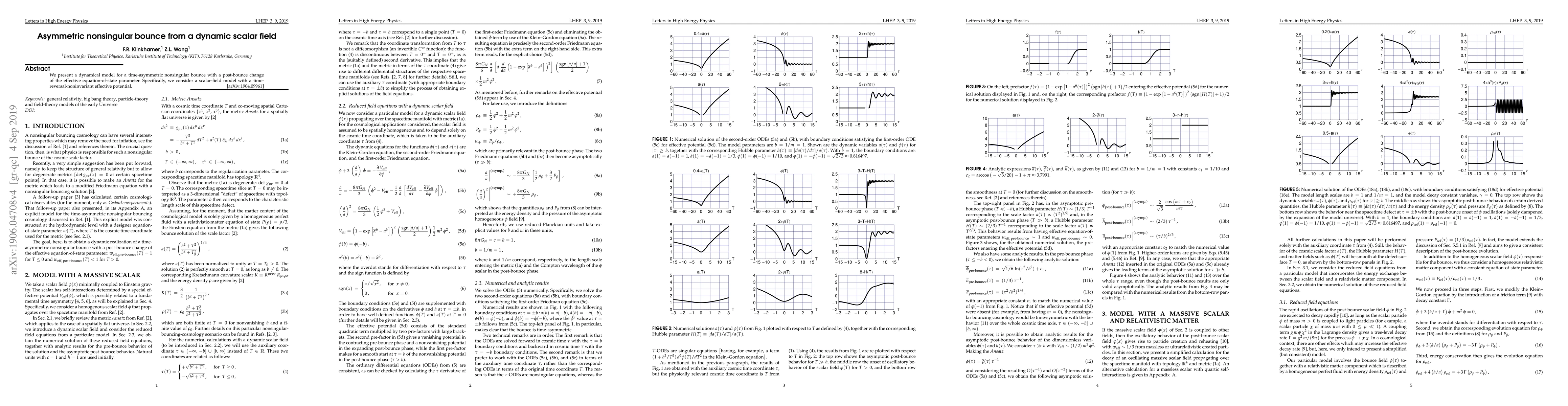 We present a dynamical model for a time-asymmetric nonsingular bounce with a post-bounce change of the effective equation-of-state parameter. Specifically, we consider a scalar-field model with a time-reversal-noninvariant effective potential.
