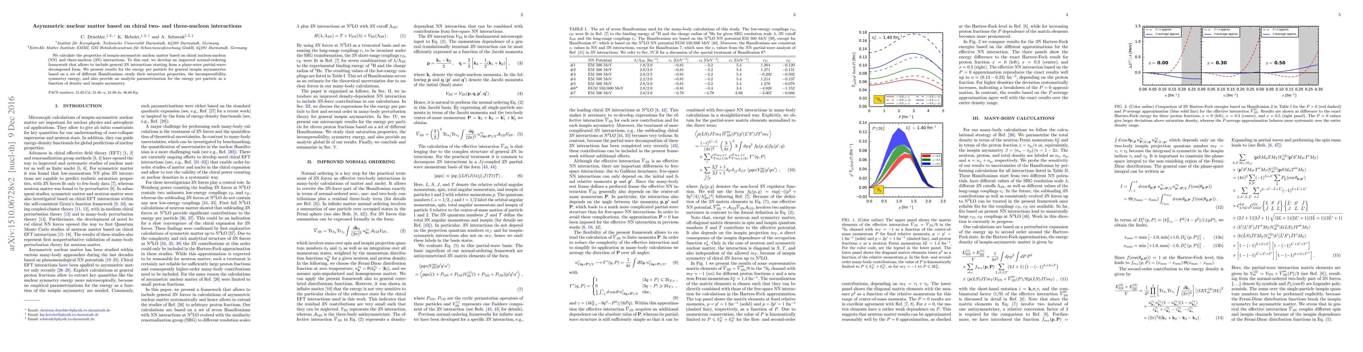 This paper investigates the properties of isospin-asymmetric nuclear matter using chiral nucleon-nucleon and three-nucleon interactions, developing an improved framework to include general three-nucleon forces. The study presents results on energy per particle, saturation properties, incompressibility, symmetry energy, and provides an analytic parametrization for these quantities.