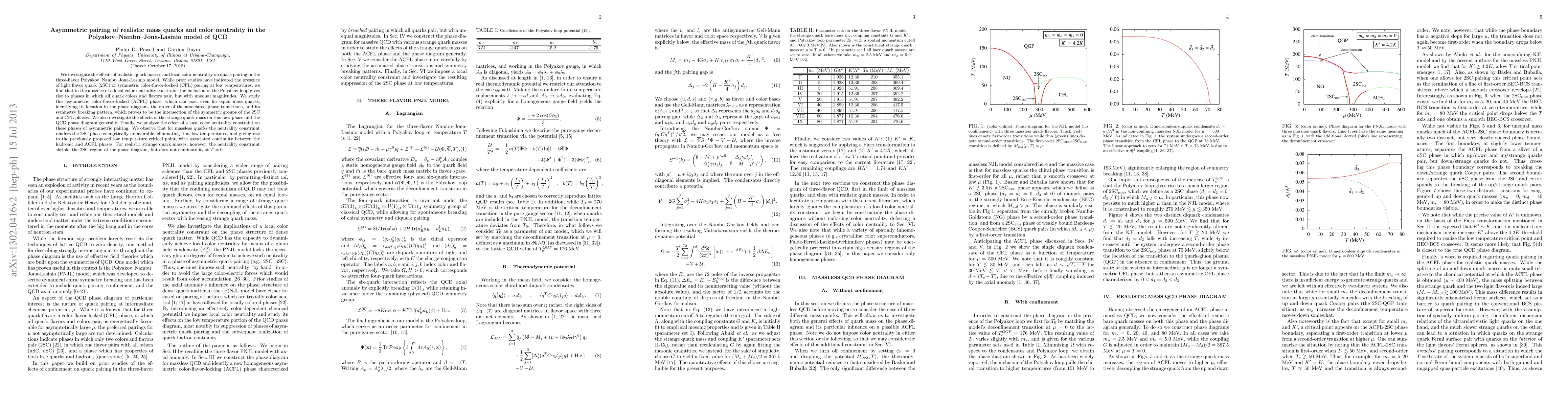 This paper explores the Polyakov-Nambu-Jona-Lasinio model with realistic quark masses, discovering an asymmetric color-flavor-locked (ACFL) phase where all quark colors and flavors pair unequally. It identifies the ACFL's position in the phase diagram, its transition order, and symmetry breaking pattern, and examines the impact of strange quark mass and local color neutrality constraints on this phase.