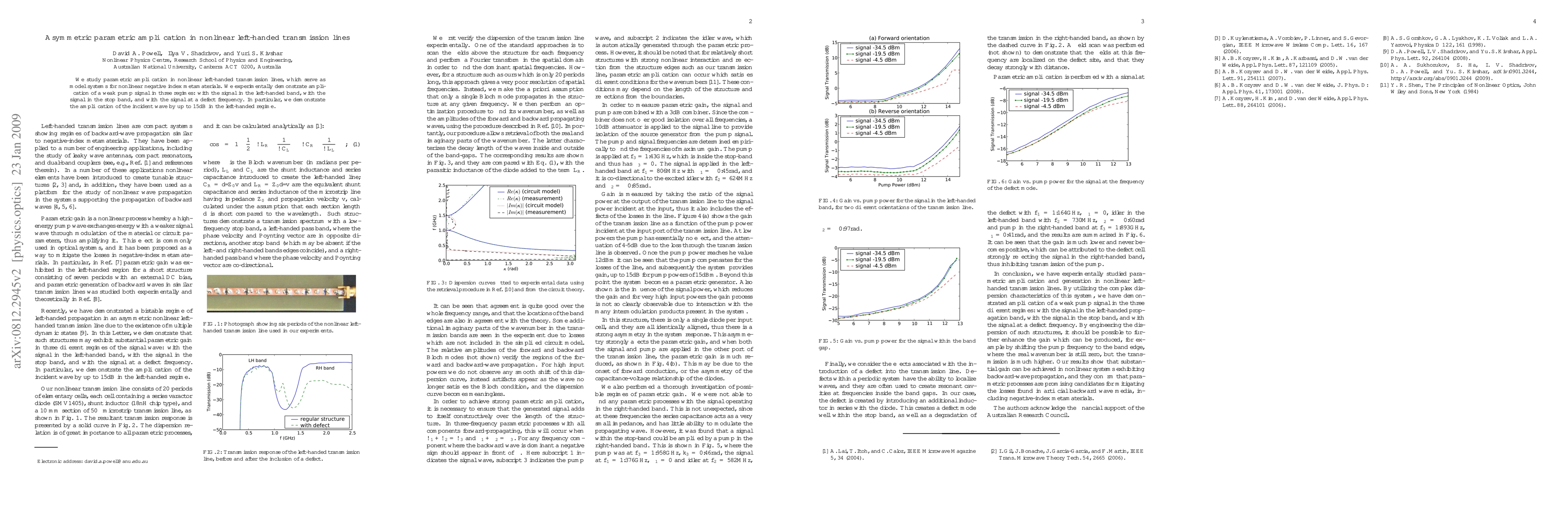 This paper investigates parametric amplification in nonlinear left-handed transmission lines, demonstrating amplification of weak pump signals in three distinct regimes, achieving up to 15dB amplification in the left-handed regime. The study highlights the potential of these materials as model systems for nonlinear negative index metamaterials.